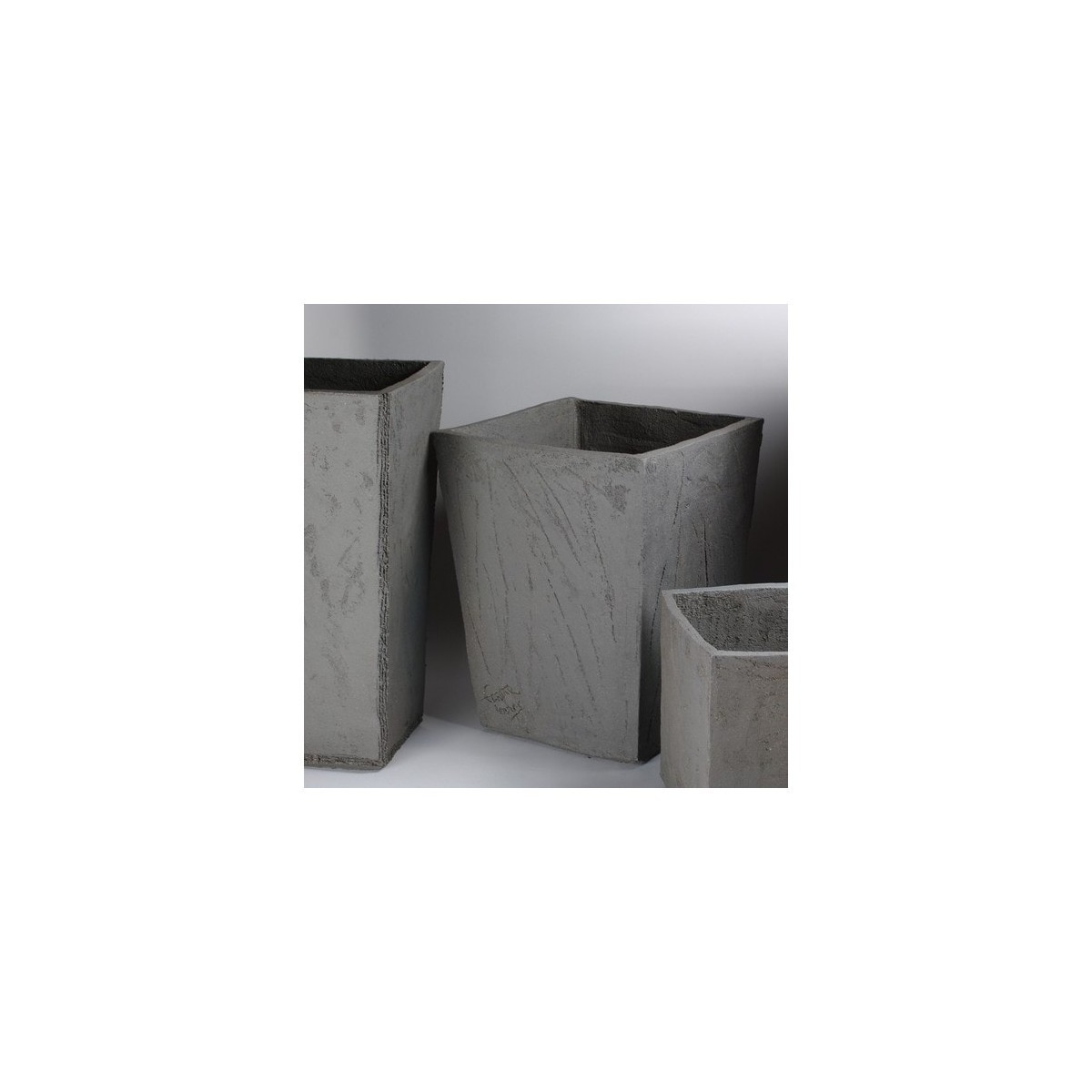 Contemporary black garden pot in stonware, the impression of material cooked at high temperature gives it metallic reflections. Clean line to enhance your plants. All Entre Terres garden pieces are guaranteed frost-resistant.