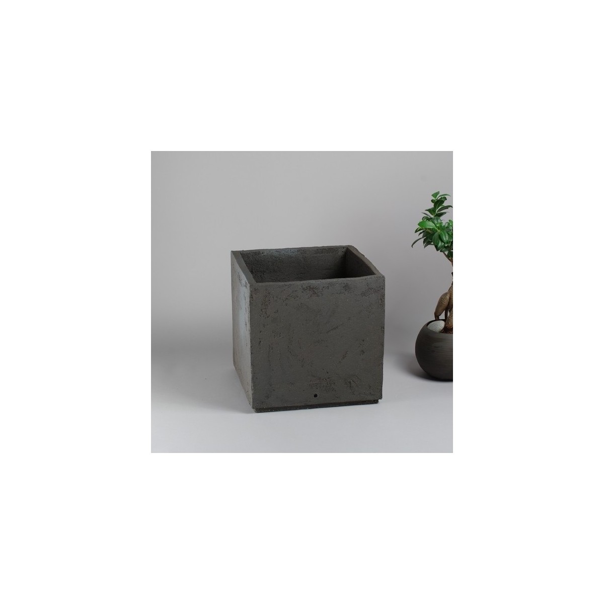 Cubic garden pot in black stoneware, float stoneware and metallic for cooking. HT 30, LONG 30cm.