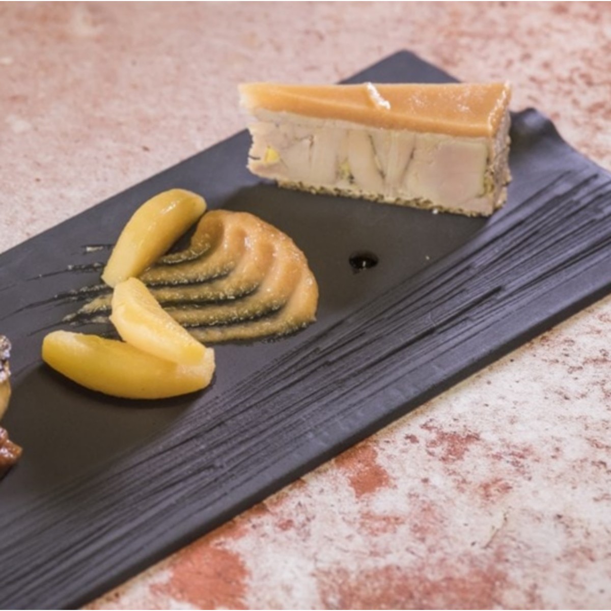 Presentation tray, rectangular plates in black stoneware printed creation " Entre terres" adapted to measure.