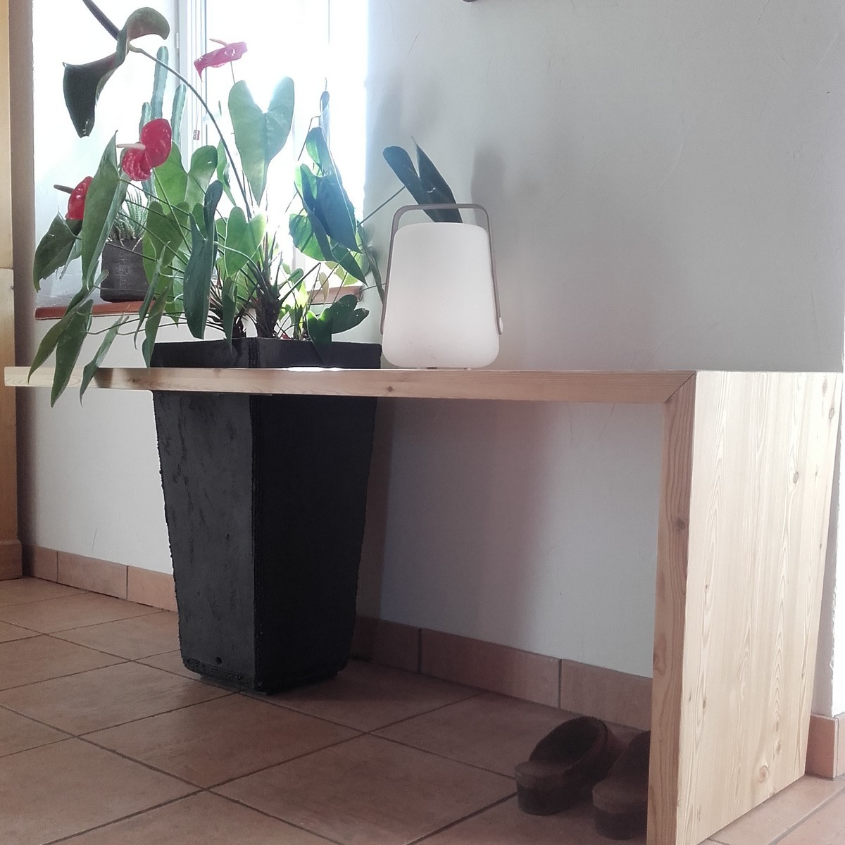 Adaptation at this customer's place of garden pots in bench for the entrance.