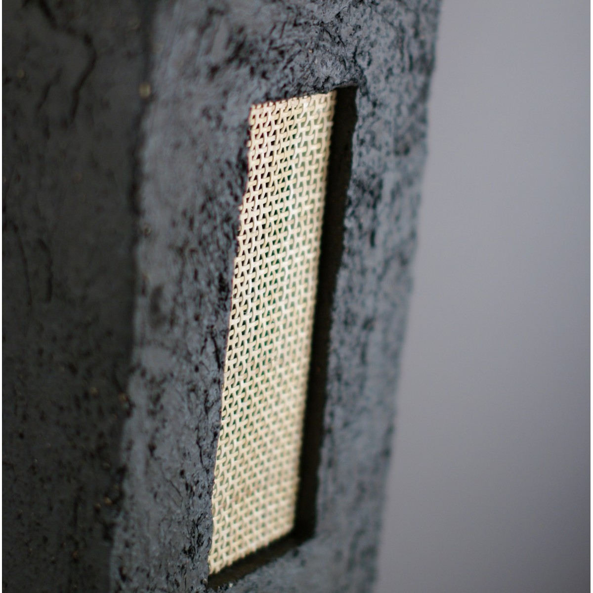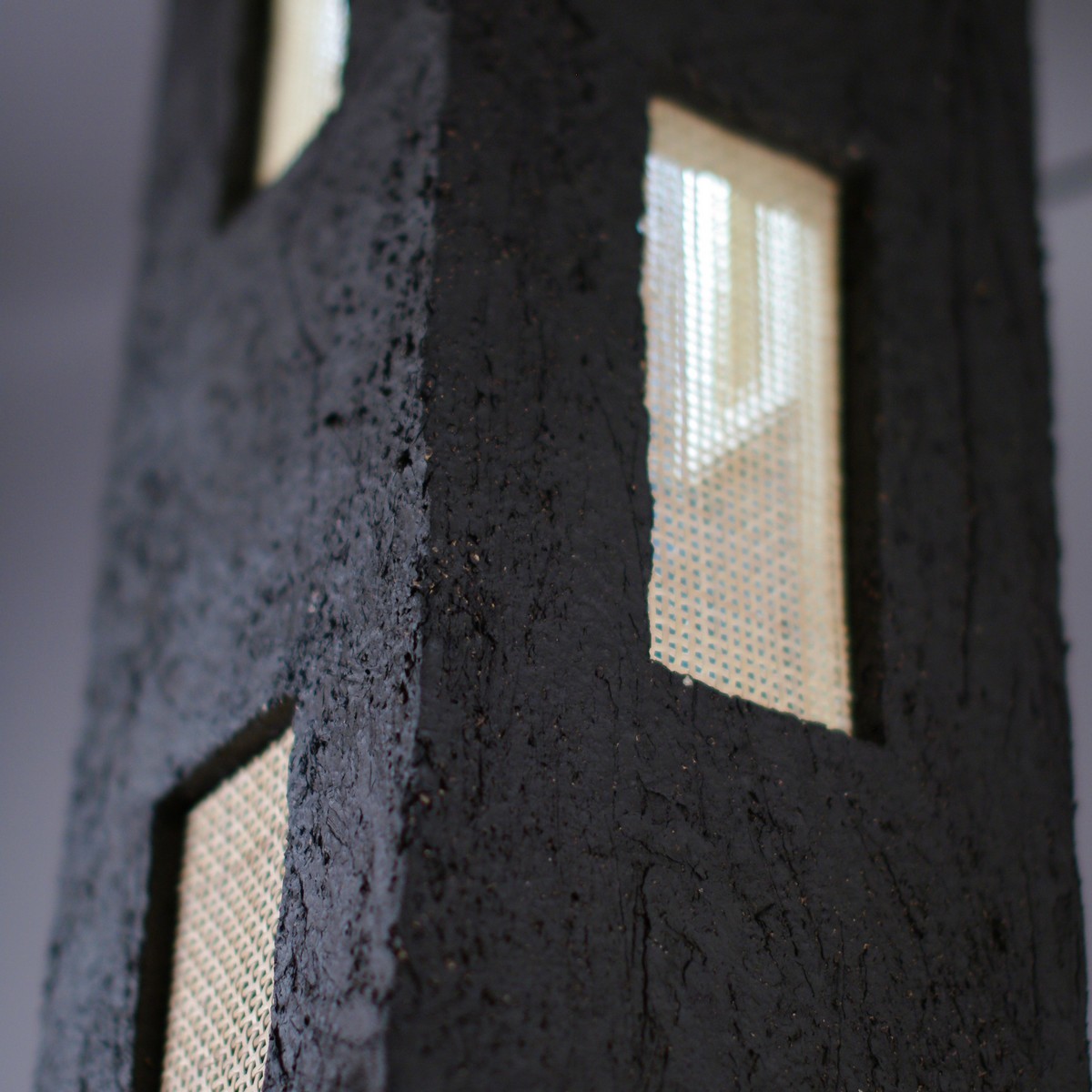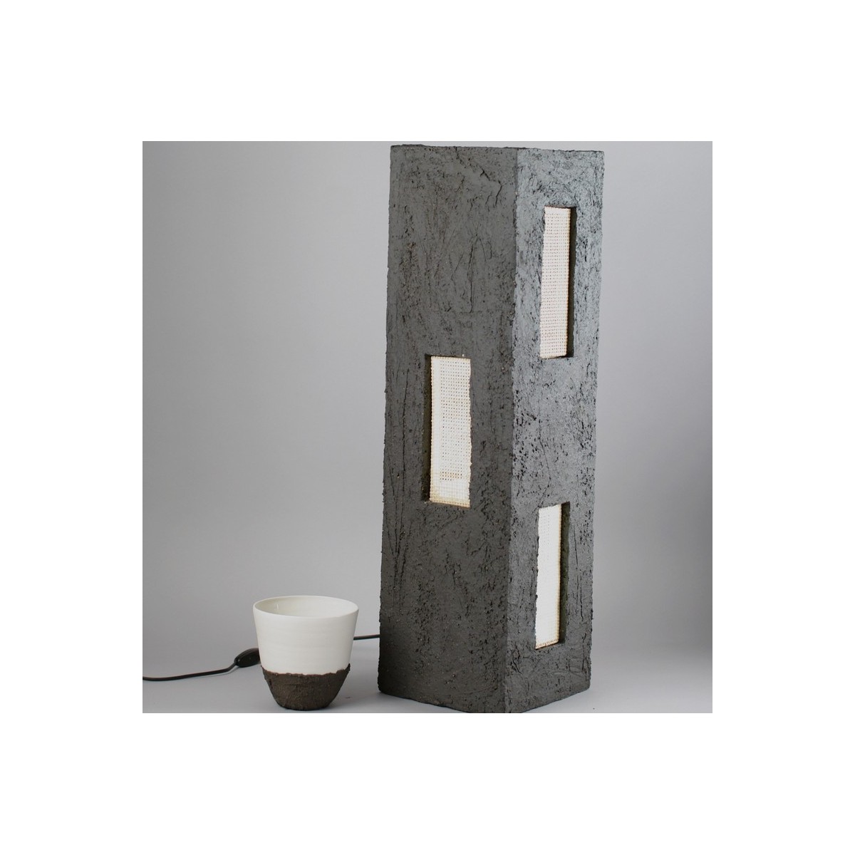 The "home" table lamp has 21.7 cm long windows. The black stoneware with a rough rough surface is exchanged with a fine wickerwork.