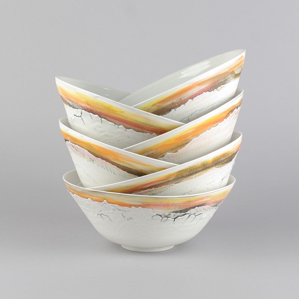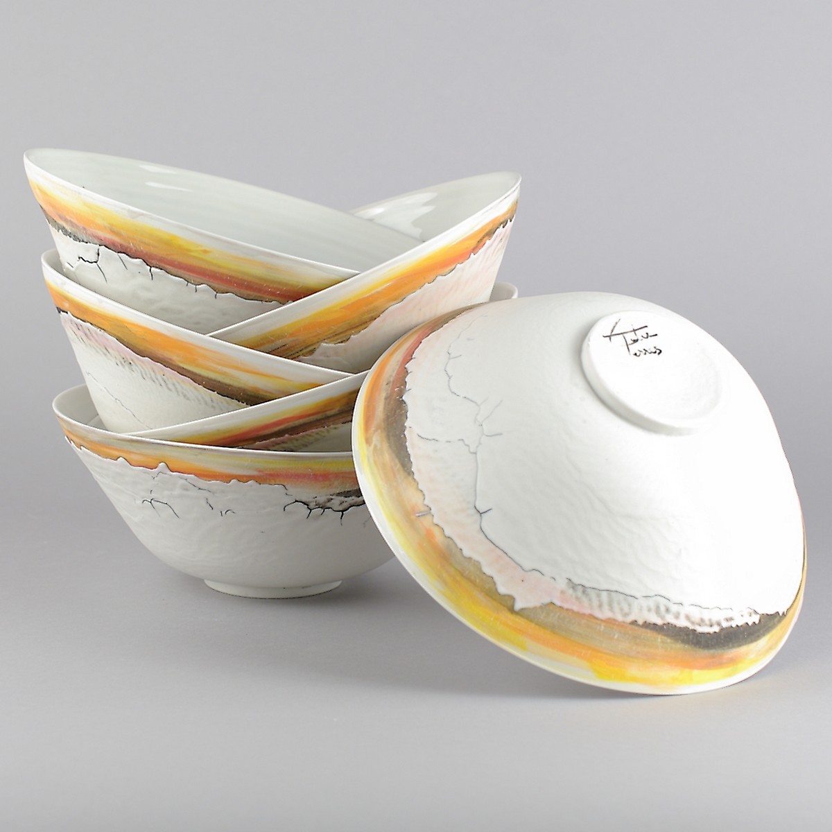 Open porcelain bowl with flat base. Shape of a ramen soup bowl. Collection ô ciel.