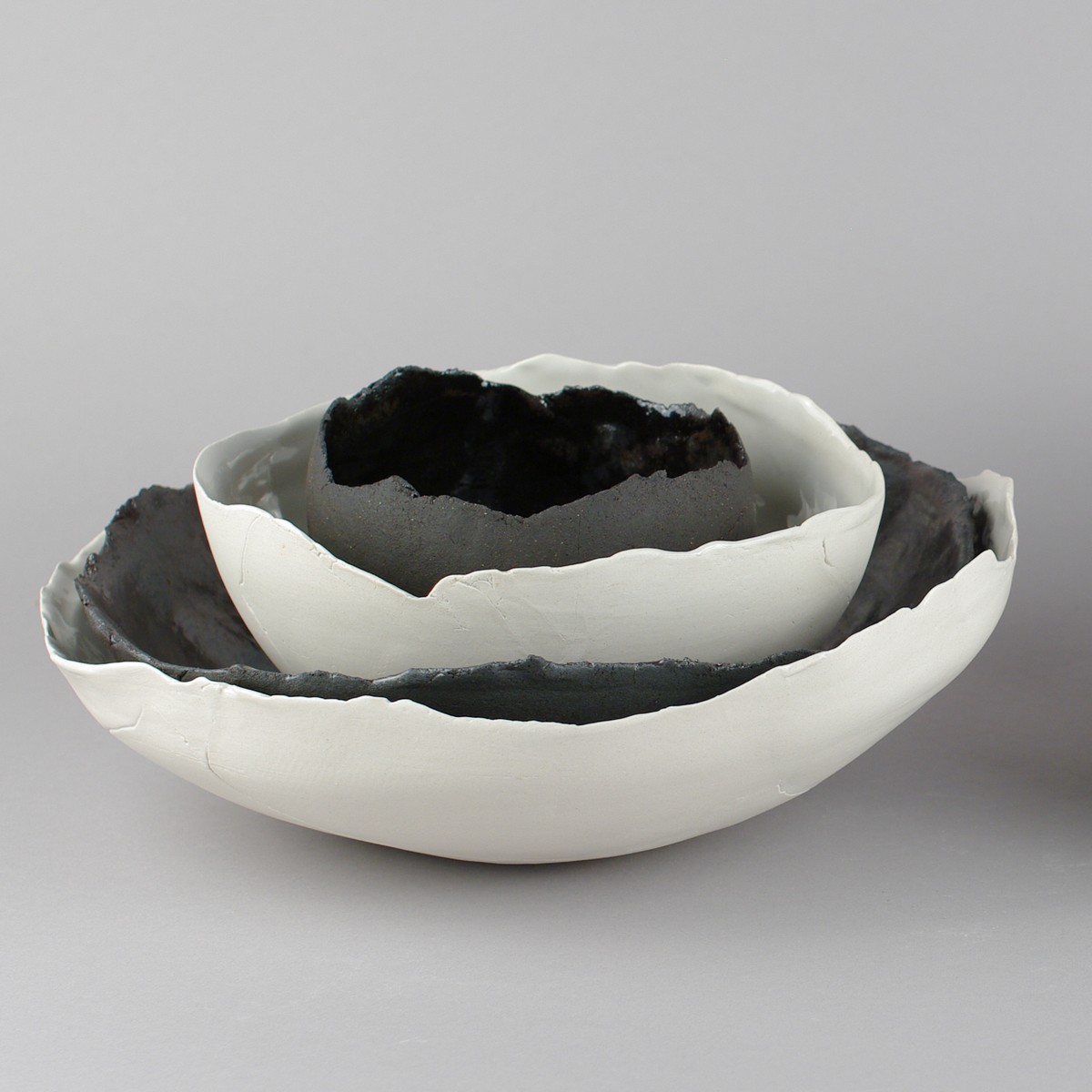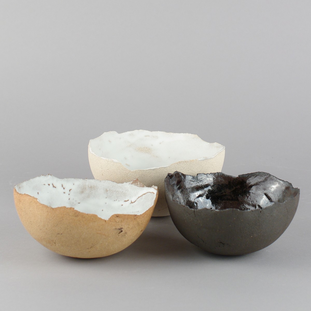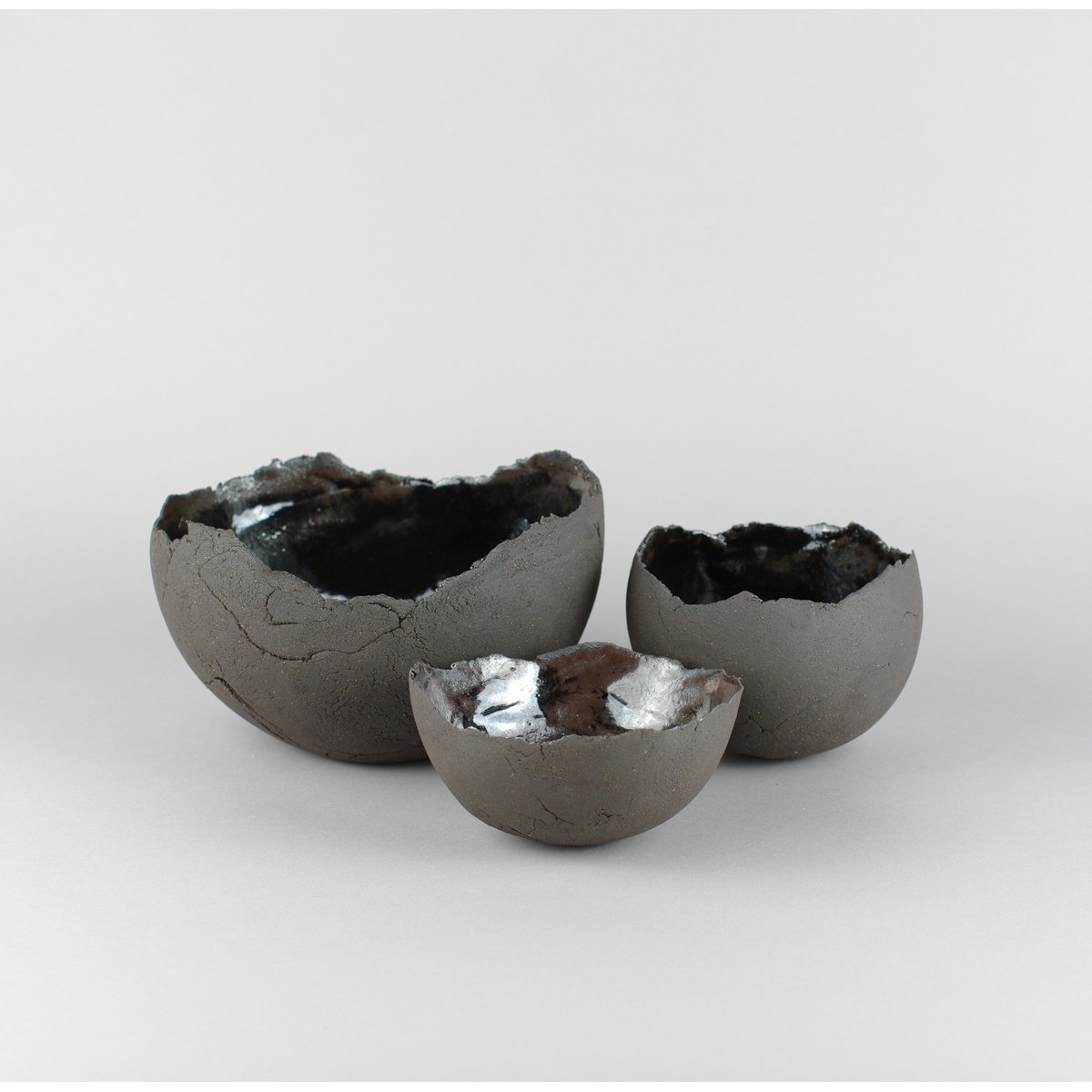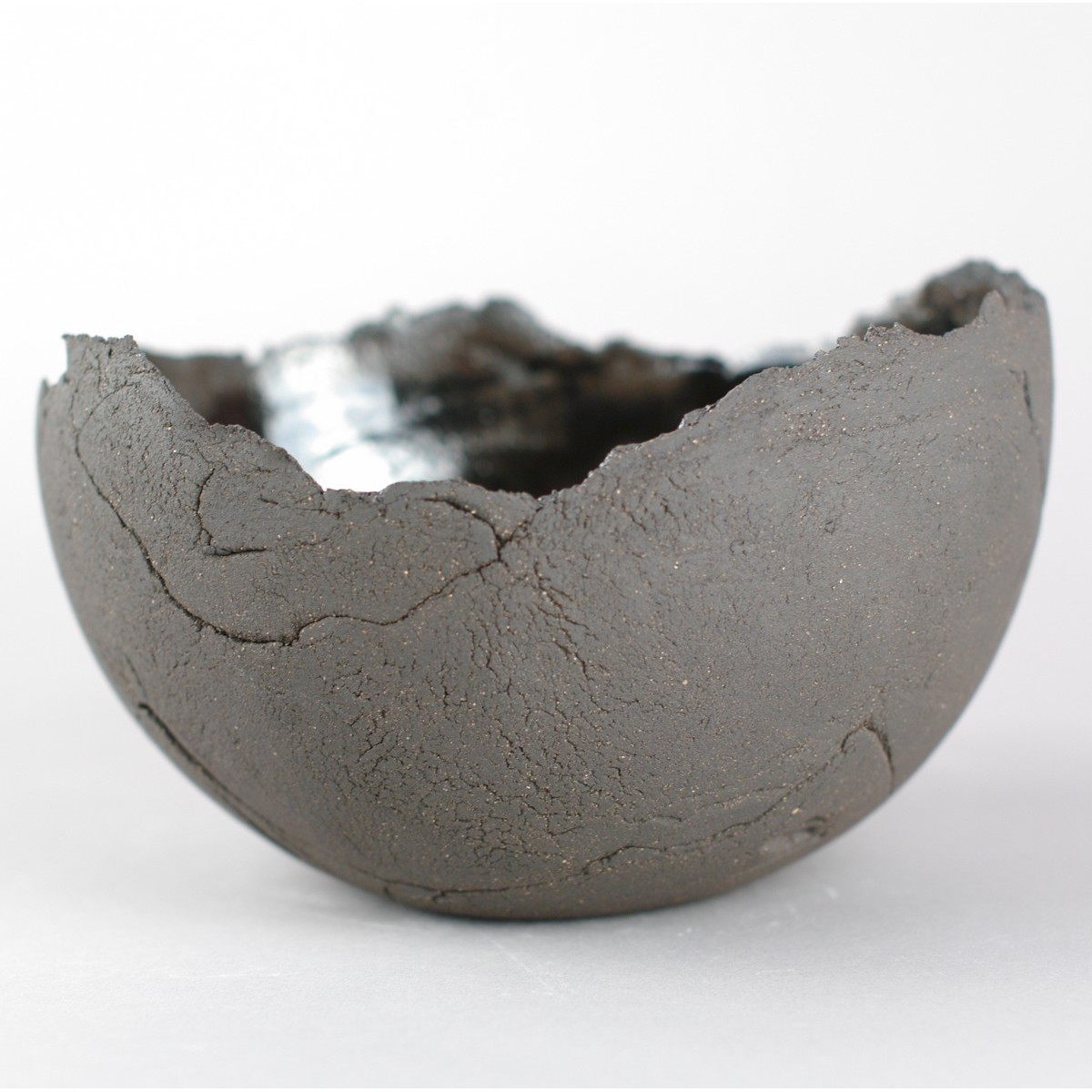 The crack is highlighted, a strong aesthetic choice. It creates a random landscape conducive to dreams. The contrast between the smooth inside and the rough outside of the bowl is particularly elegant. This highly decorative piece also allows you to highlight what it contains. The bowls from this series can be set into the ground and blend harmoniously with pieces of other earth colours.
