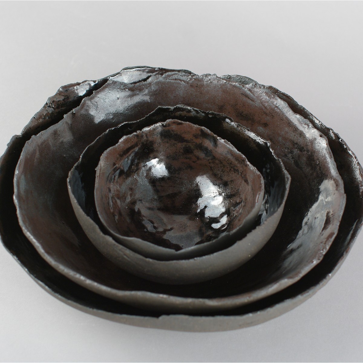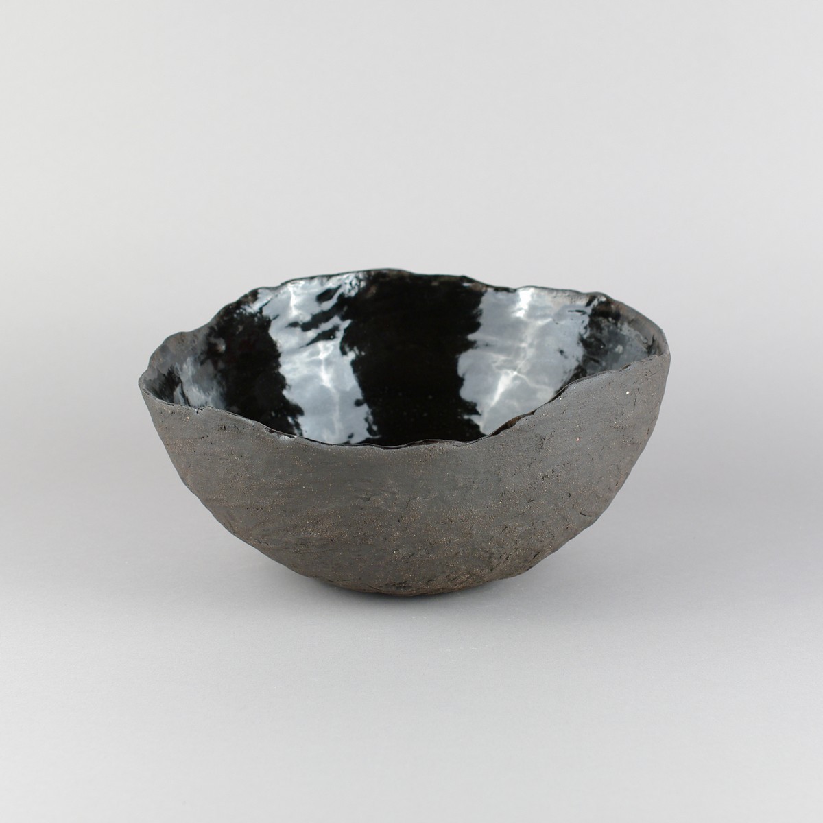 Black stoneware bowl with a shiny glaze finition inside and rough finition outside. This contrast gives an elegant effect and the aesthetic cracks on the dish create an authentic random decoration.