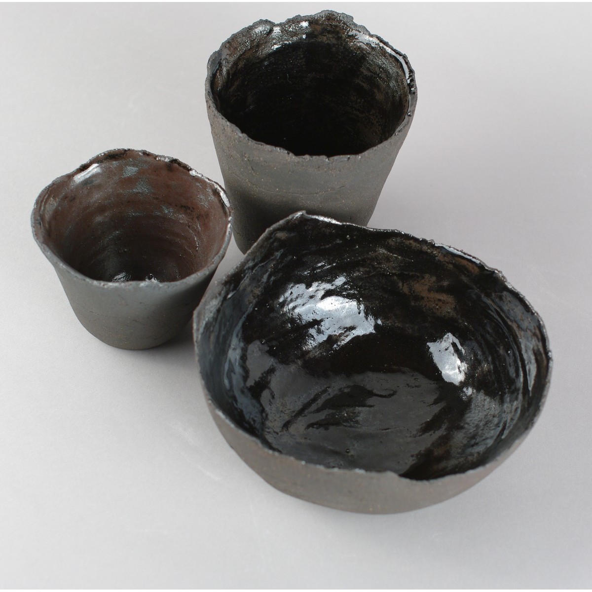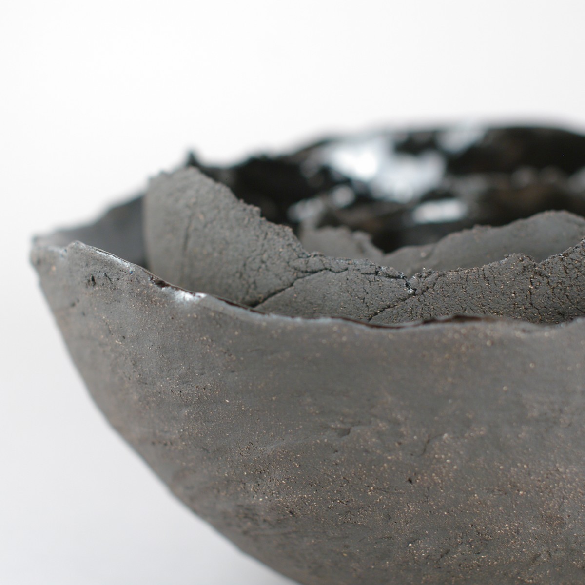 Shallow black stoneware bowl with a shiny glaze finition inside and rough finition outside. This contrast gives an elegant effect and the aesthetic cracks on the dish create an authentic random decoration.