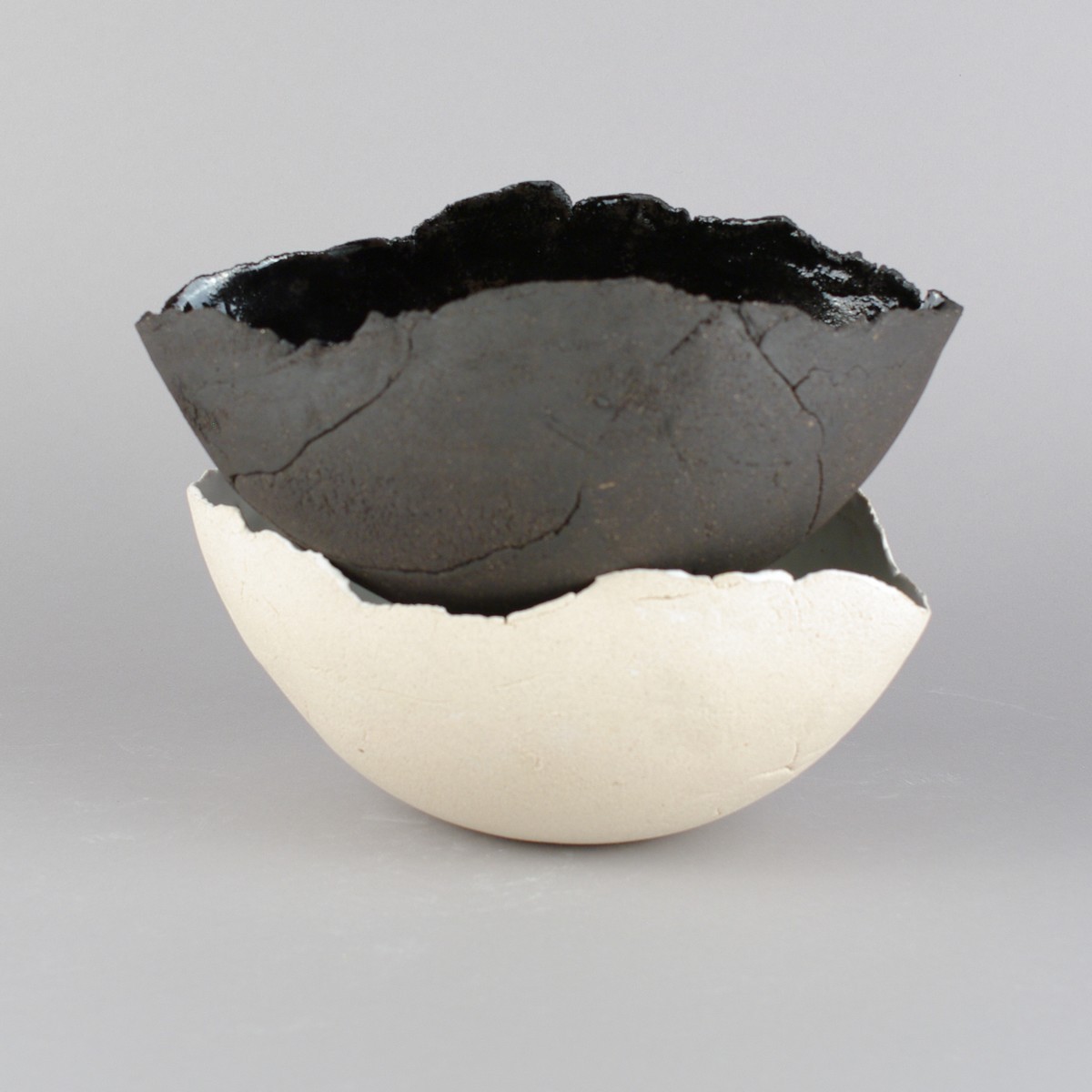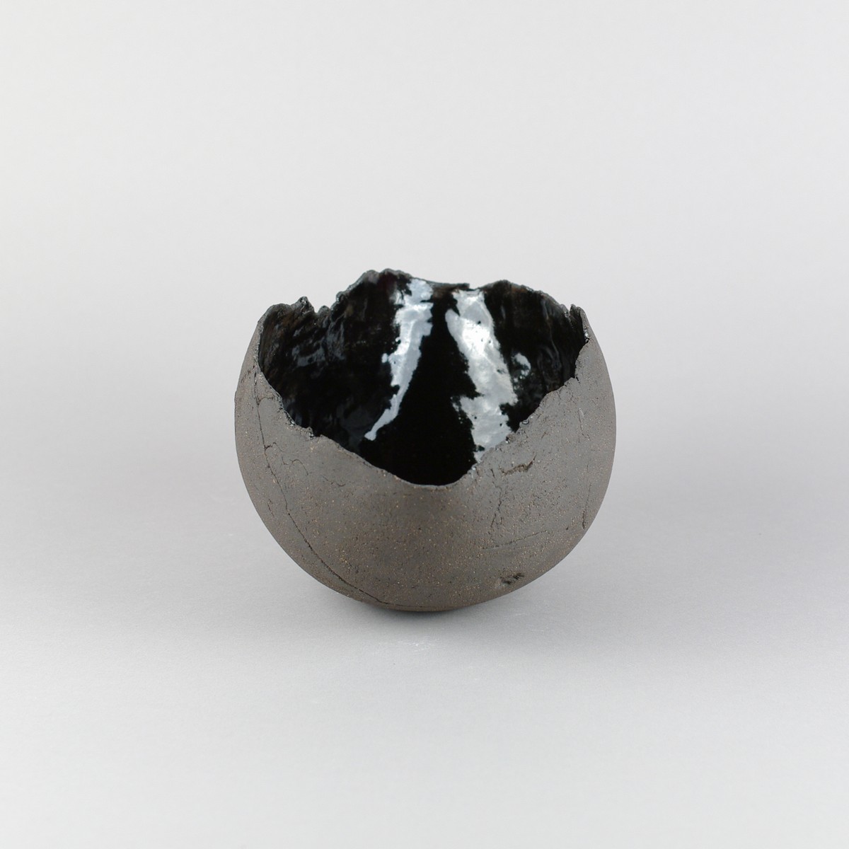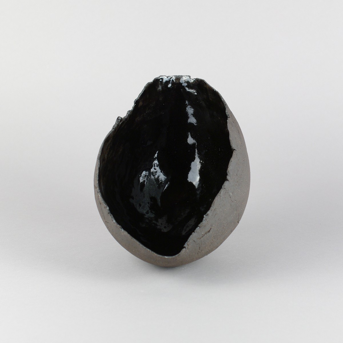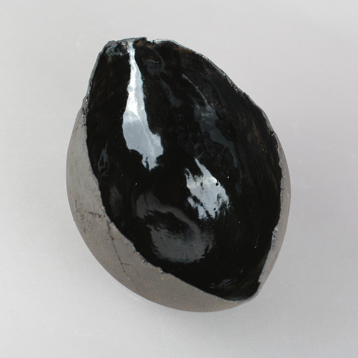 Black oval " eggshell " stoneware bowl with a shiny glaze finition inside and rough finition outside. The aesthetic cracks on the dish create an authentic random decoration.