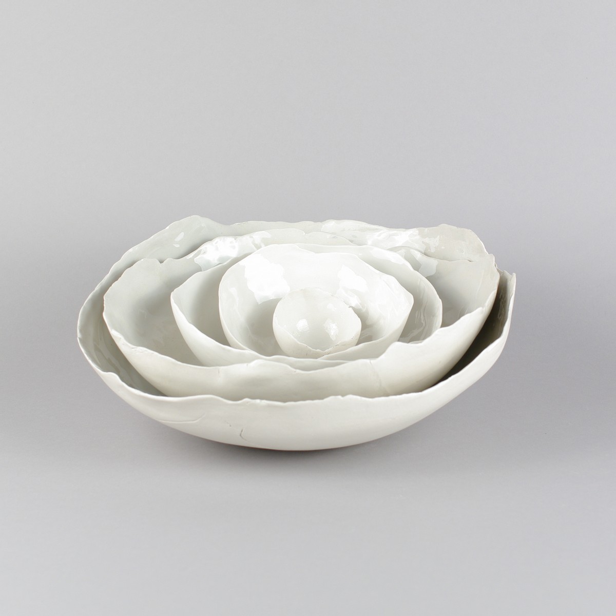 This porcelain shell ideal for the presentation: fruits, salad or even floral arrangements. The fineness of the shell and the cracks in the exterior create the decoration.