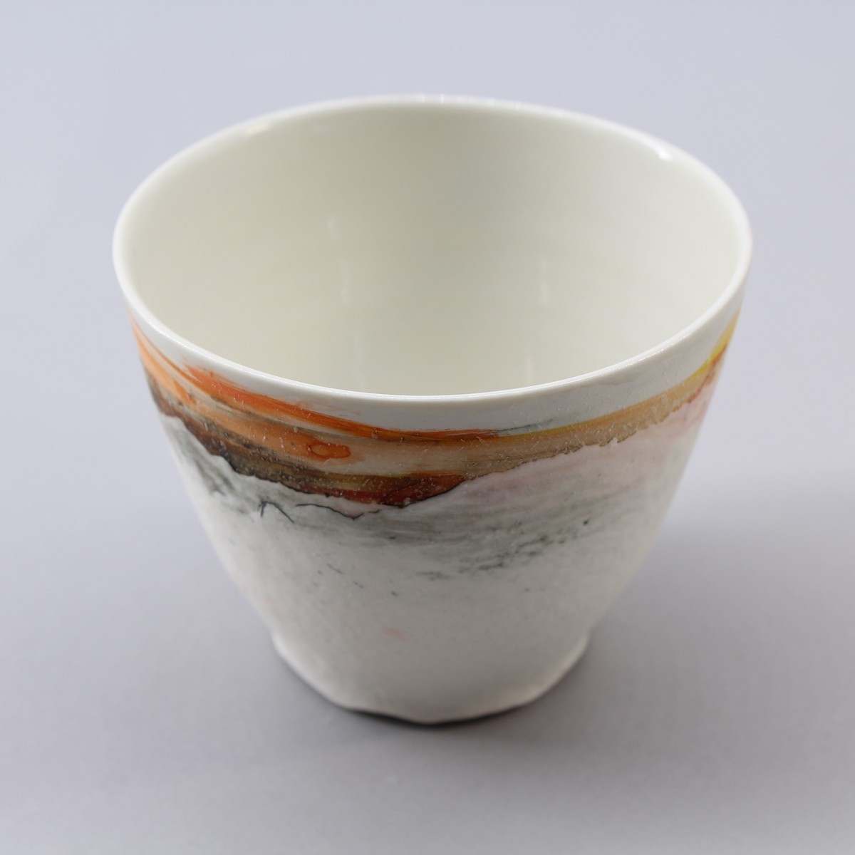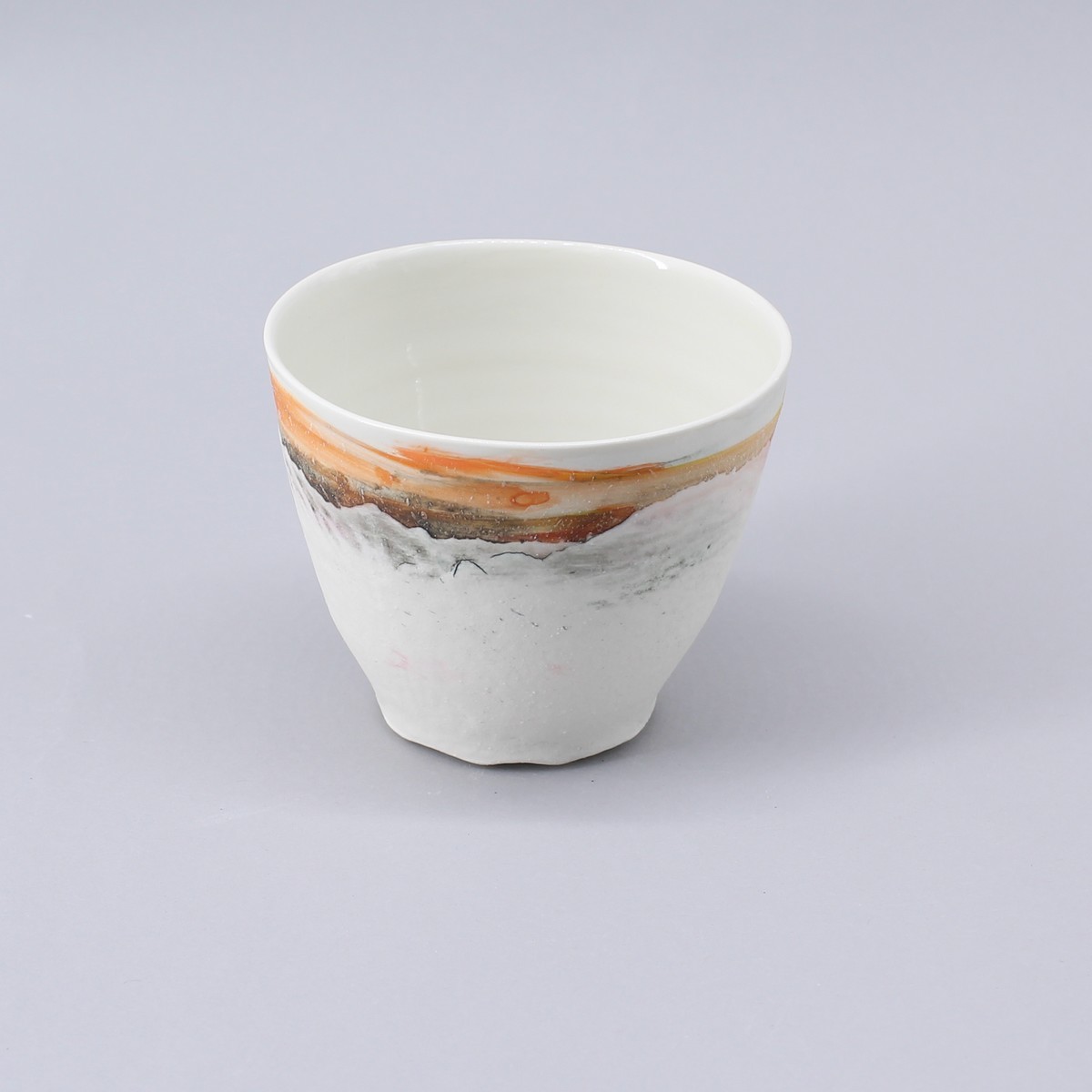 Long coffee cup, ht 7 diam8 cm, capacity 150ml, black and white, in very fine porcelain, decoration in raw layers, interior enamelling.