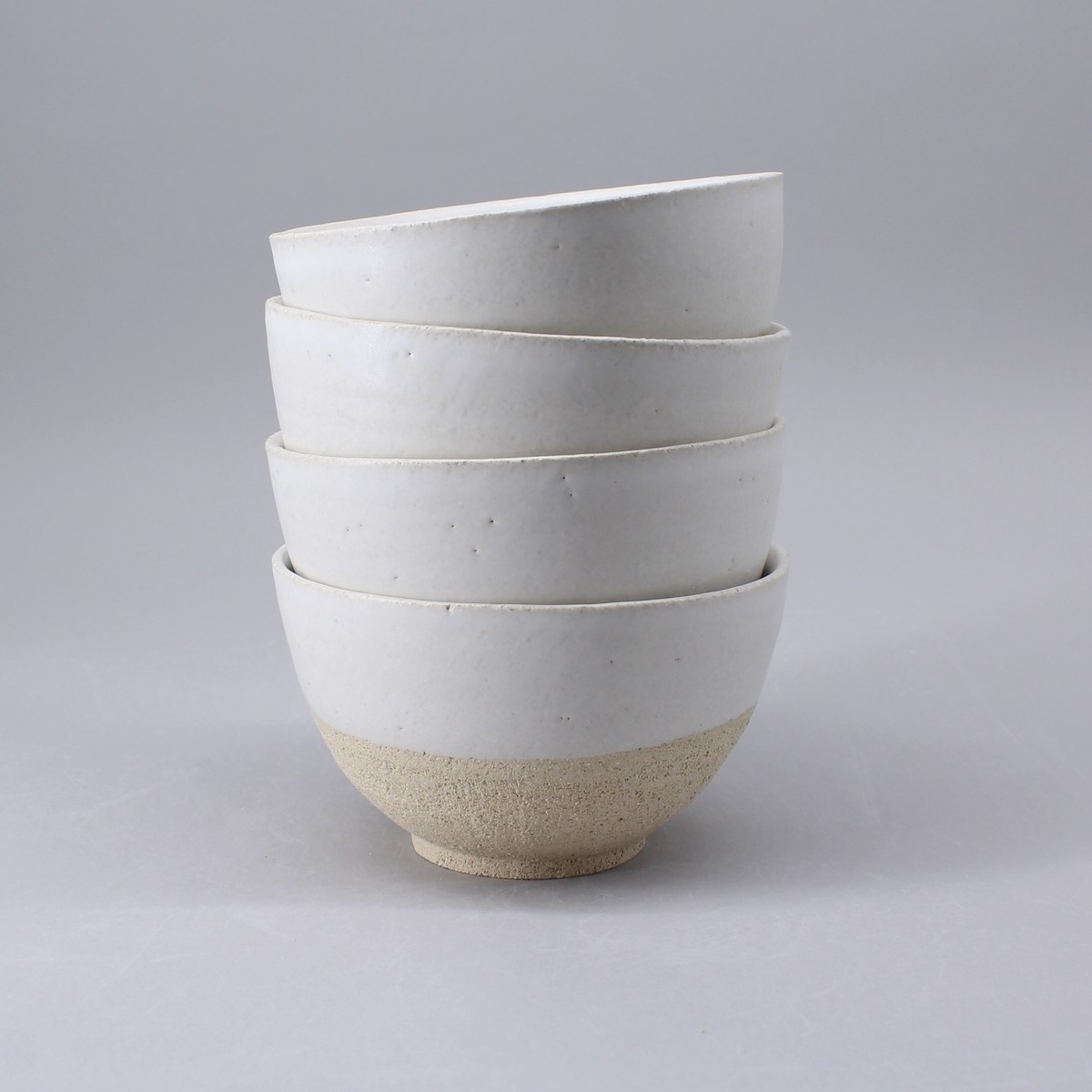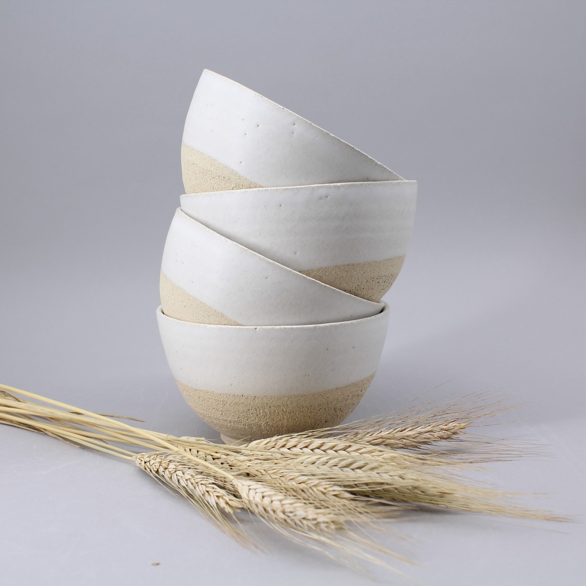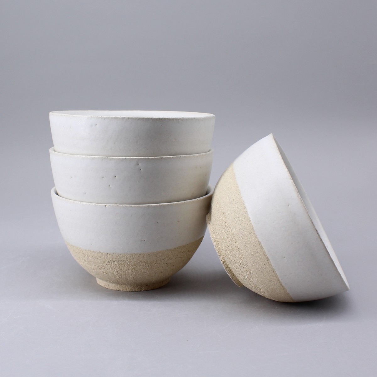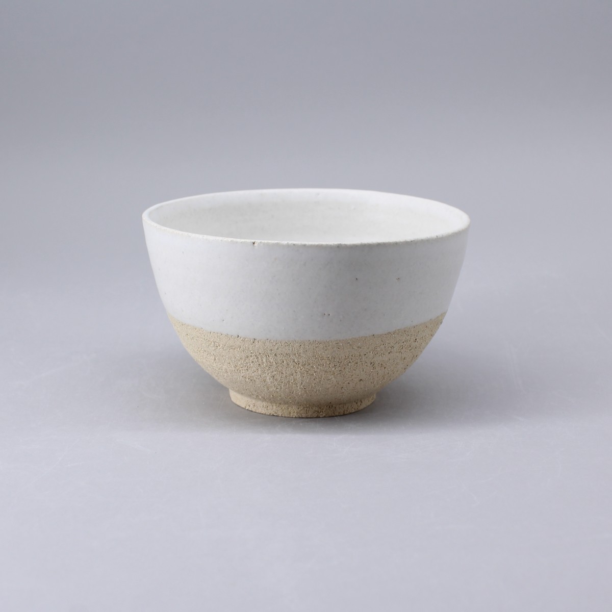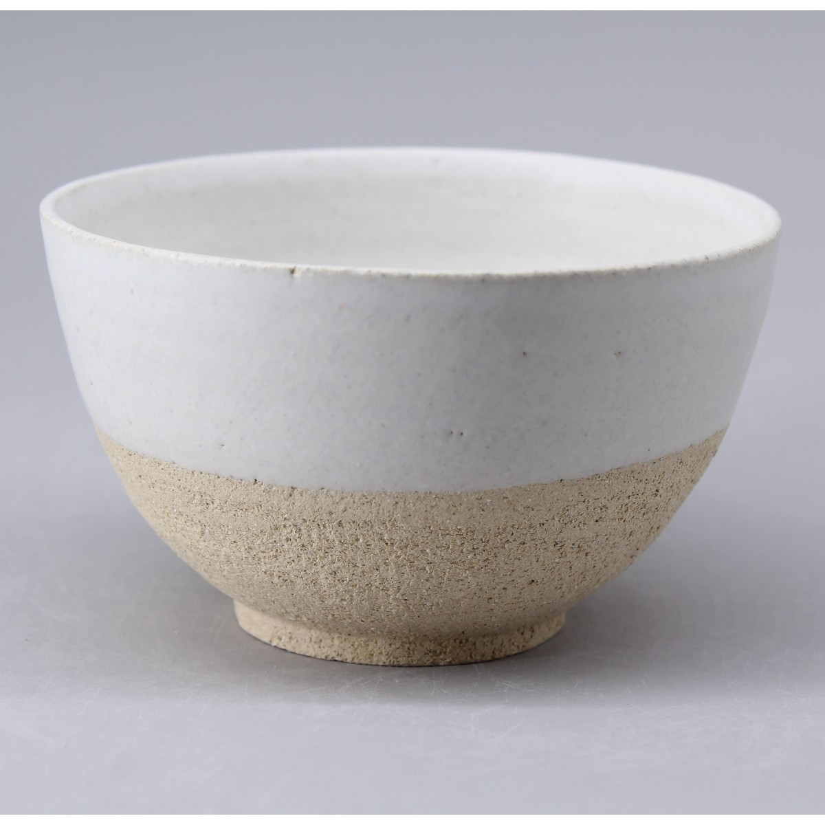 The fine grain exterior on the bottom part contrasts with the smooth white glaze on the top part.