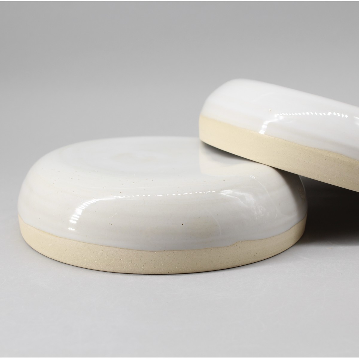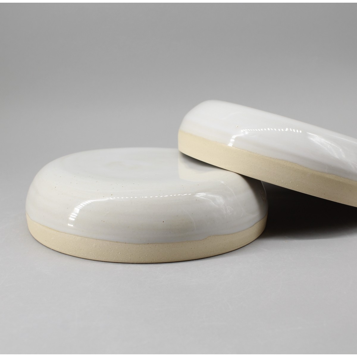 The "heads or tails" plates are enamelled on the inside and on the outside, the lip is left raw to play with the contrast of materials. They allow dishes to be served on both sides of the plate. Double function for twice as many creations.