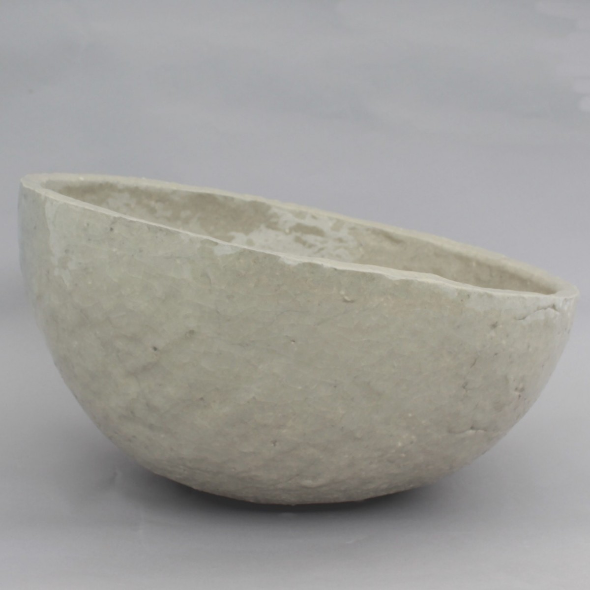 Garden pot shell asymmetrical, in raw white stoneware outside and transparent enamel inside, diam 40