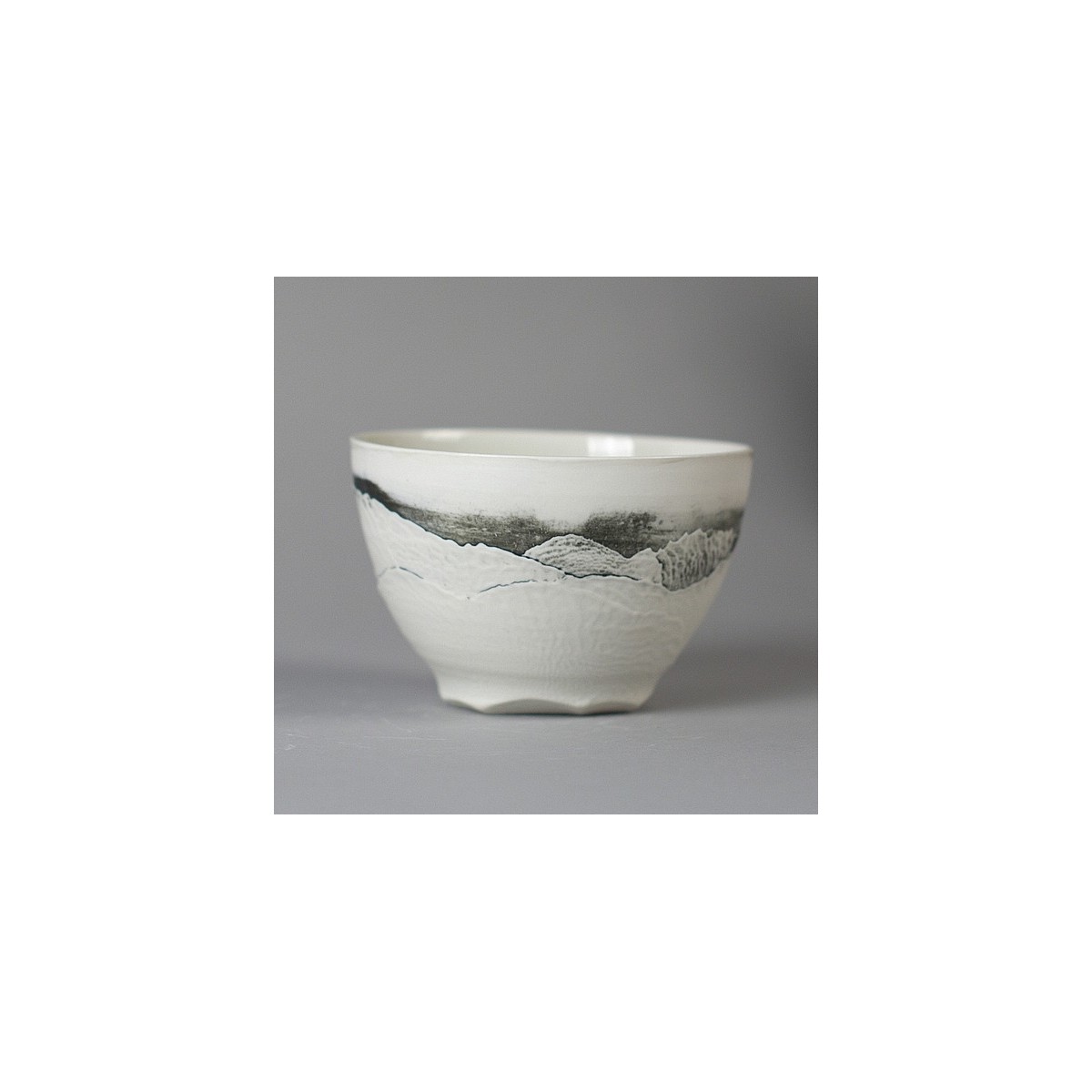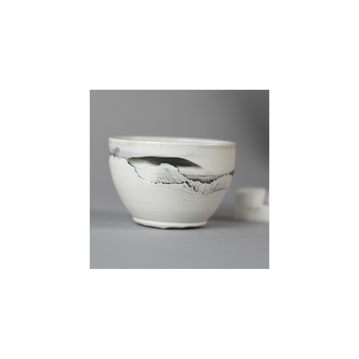 This collection is inspired by the mountain ranges of the Haute Loire department in France. Over the centuries, time has eroded the mountains of Auvergne and time is also necessary to smooth the layers of clay. The cracks are embellished and the clay becomes soft to touch. The contrast of black and white enhance each other.
