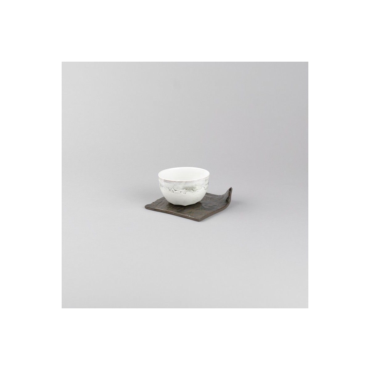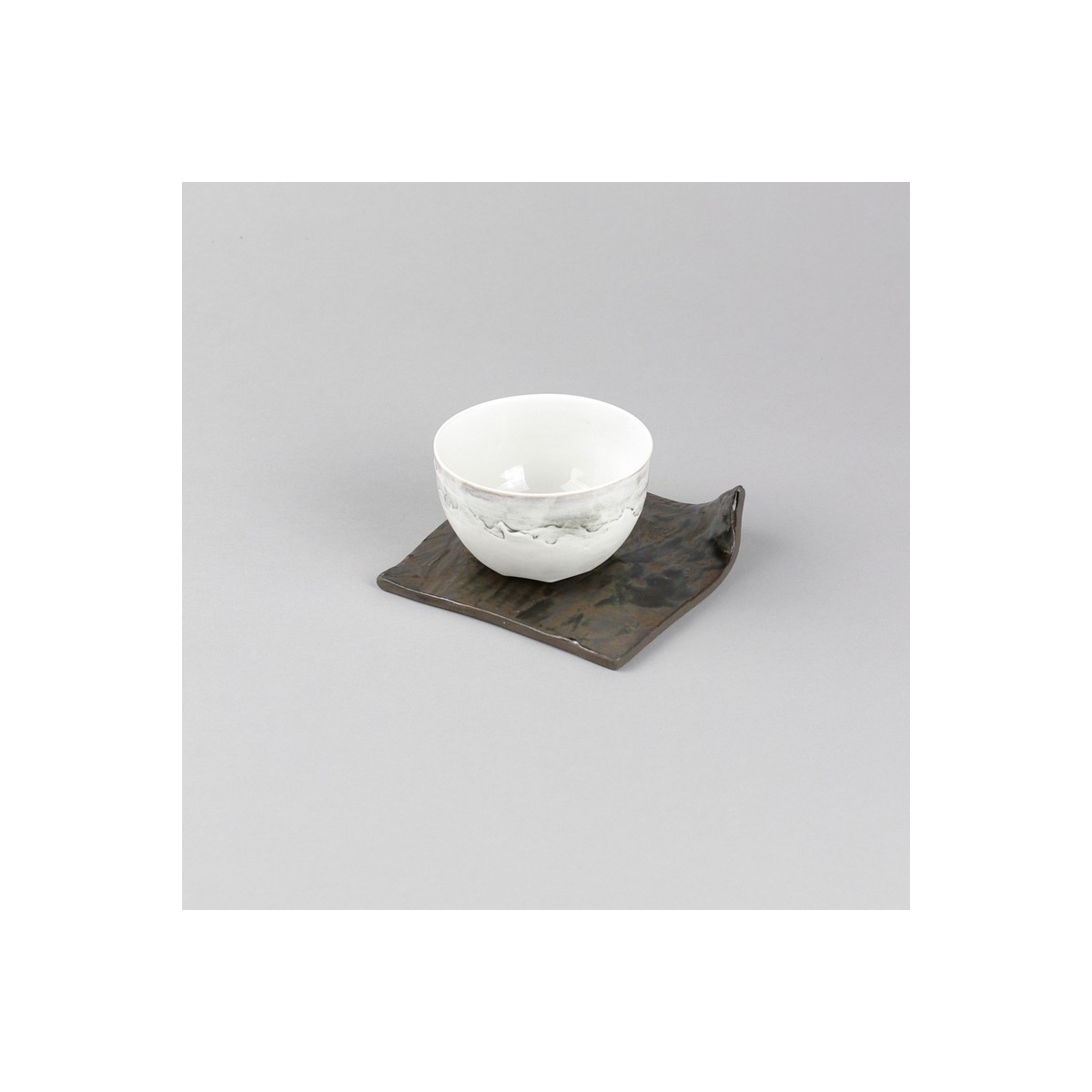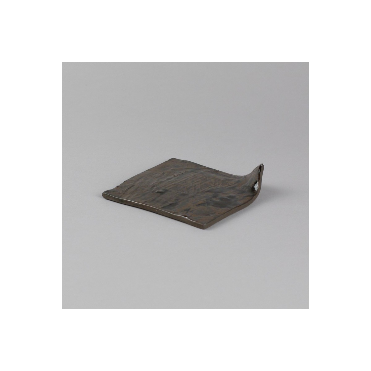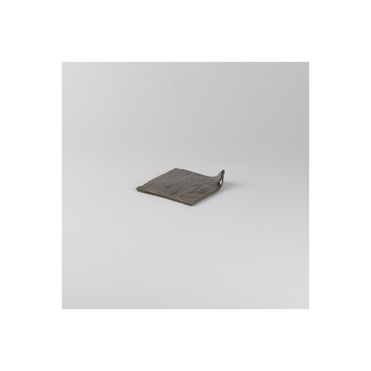 Saucer or bread plate in black satoneware enameled in metallic reflections. Square 10/10 cm raised on an angle.