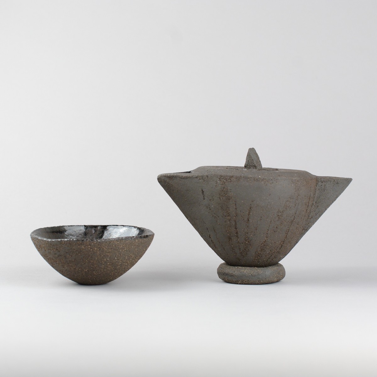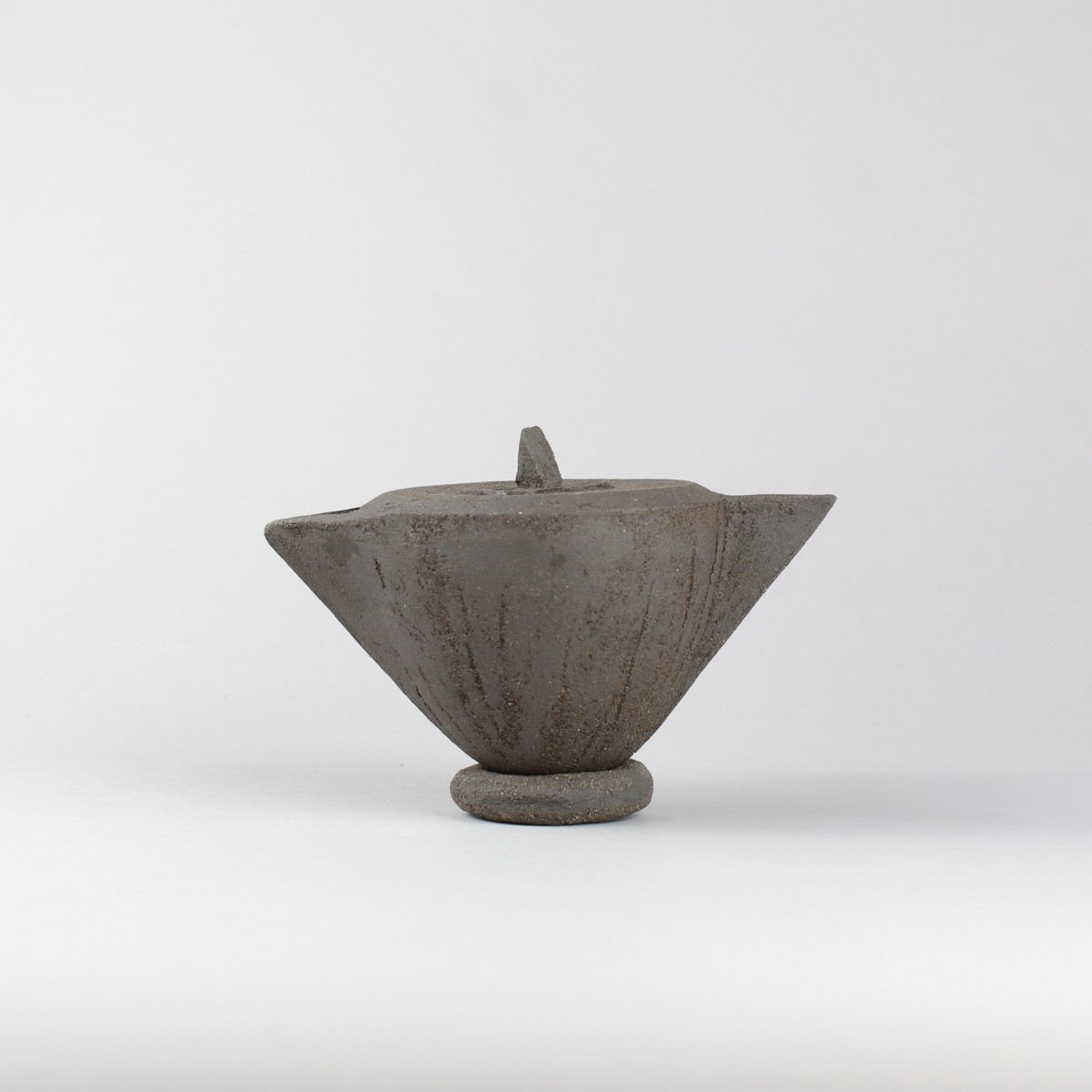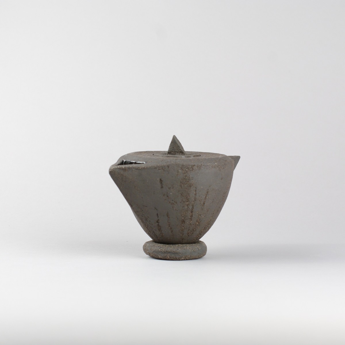 The teapot is turned in black stoneware then shaped with a spout and a casserole tail. Its foot is removable, freeing it from the "ground" and is free to attach once in hand. The stoneware ring is used to lay it. Ideal teapot for the tea ceremony.