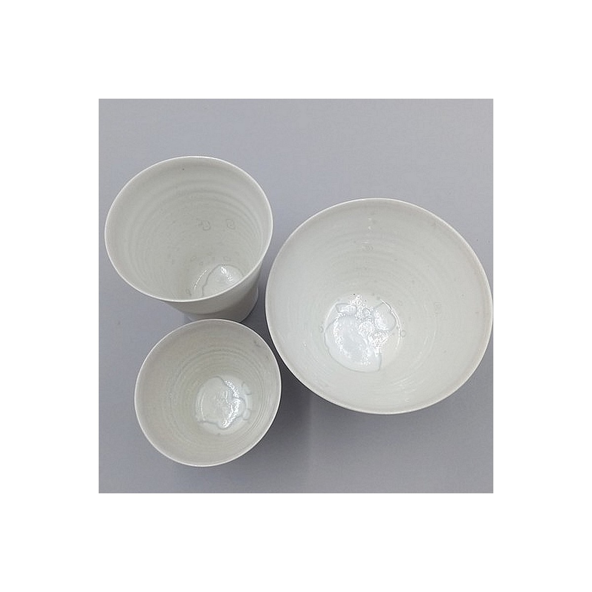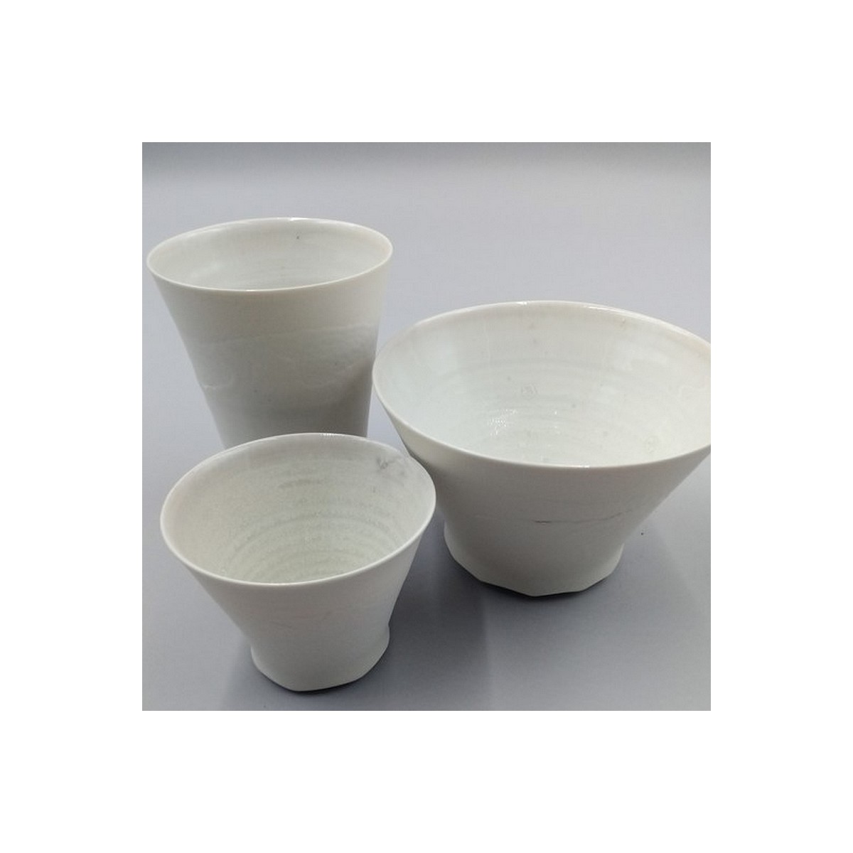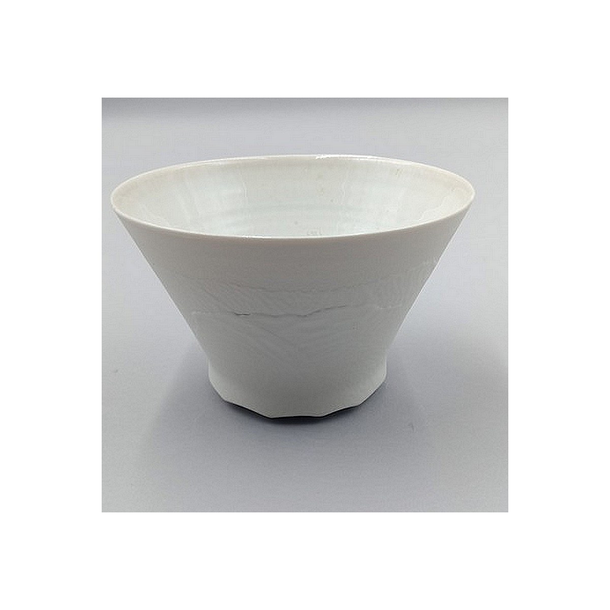 Conical bowl, porcelain bowl, rough exterior in relief, enameled interior with frost crystal effect.