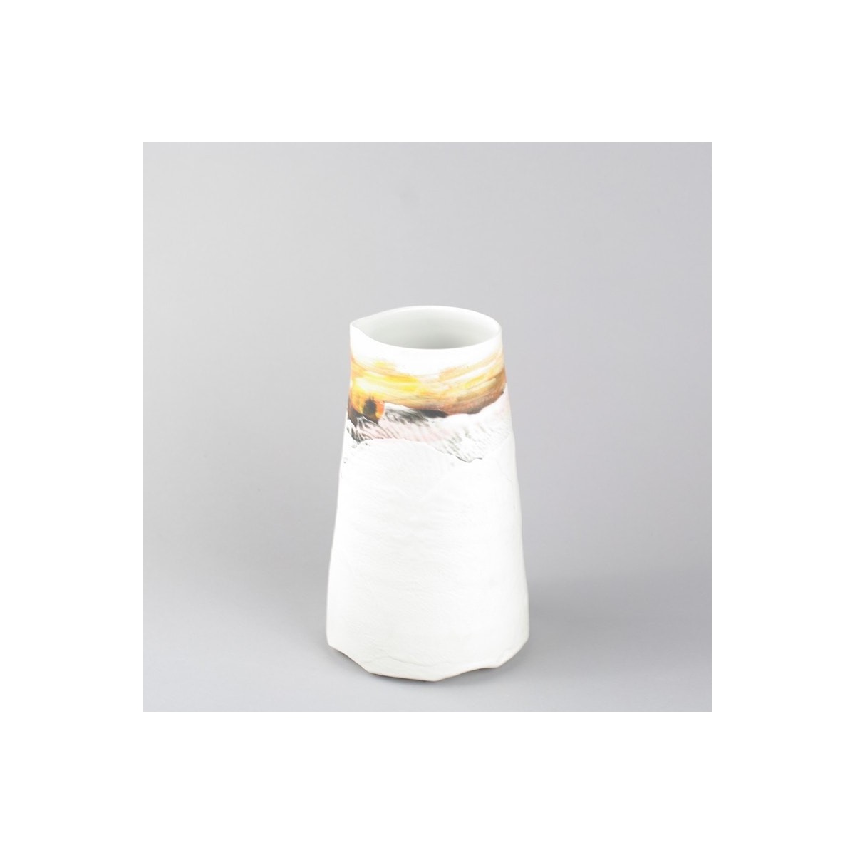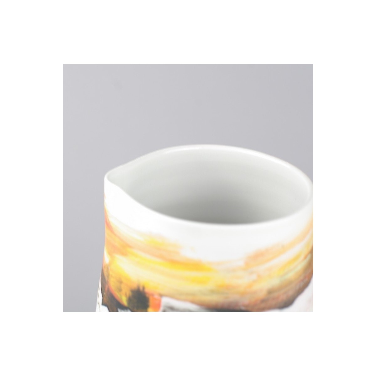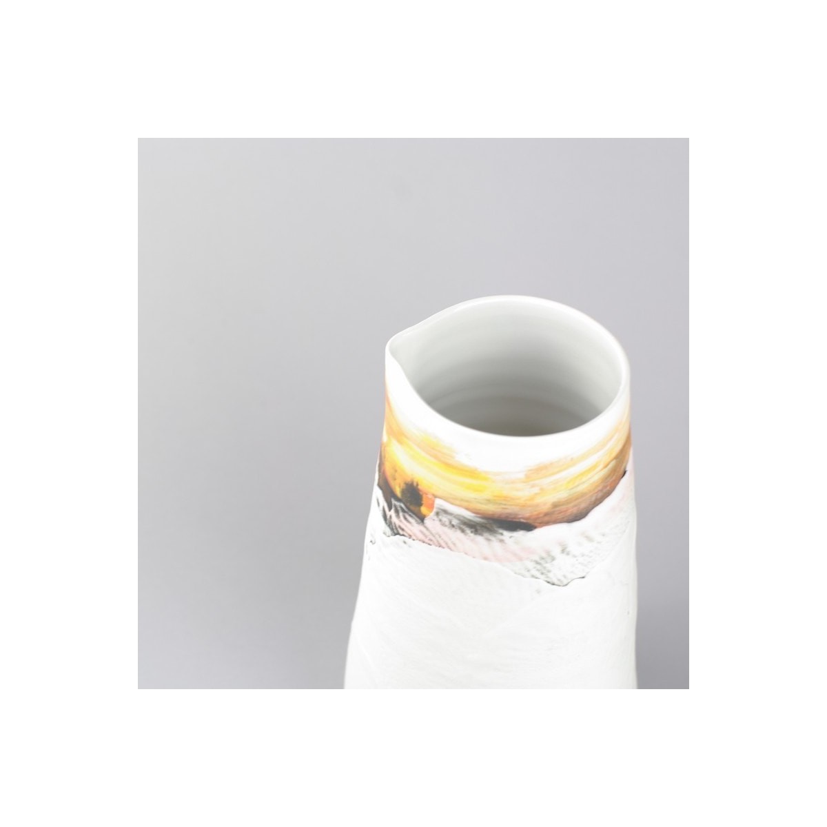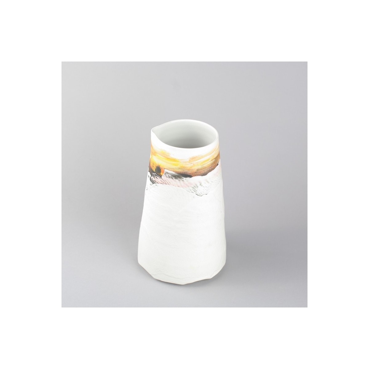 Pichet en porcelaine tourné, décor en relief brut sur l'extérieur, intérieur émaillé brillant.1litre.