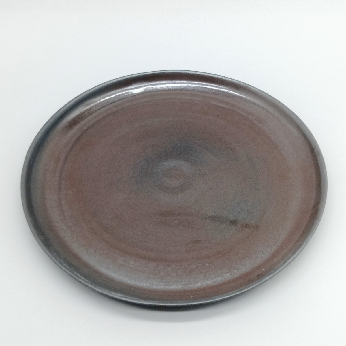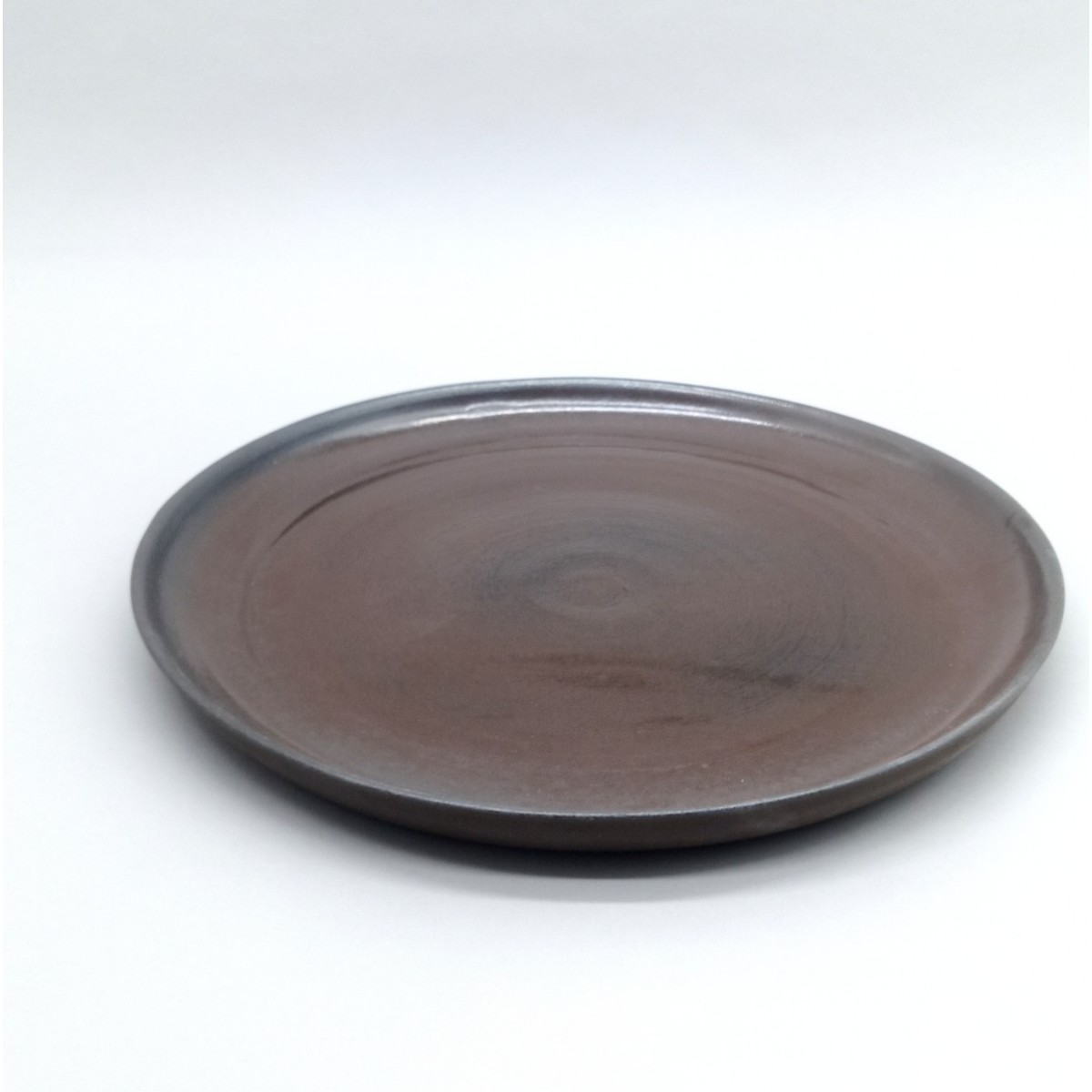 Assiette plate en grès noir, céramique travaillée en inspiration "chocolat".