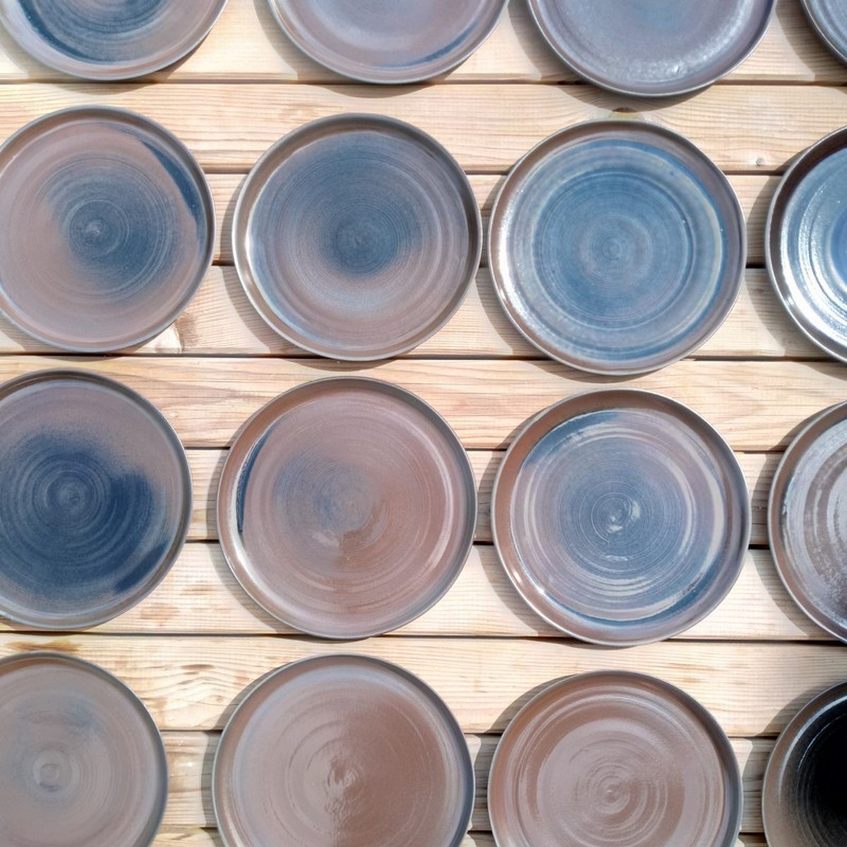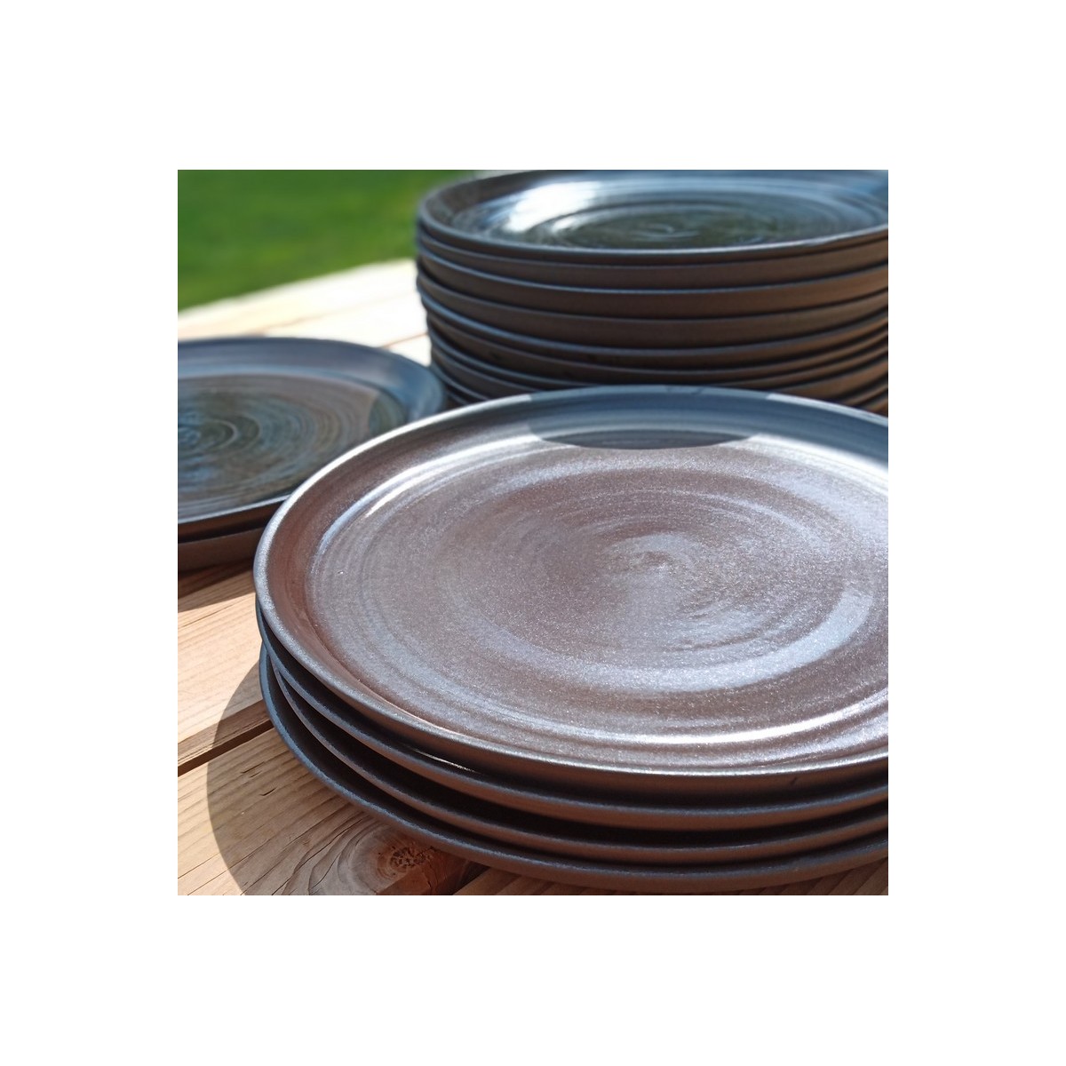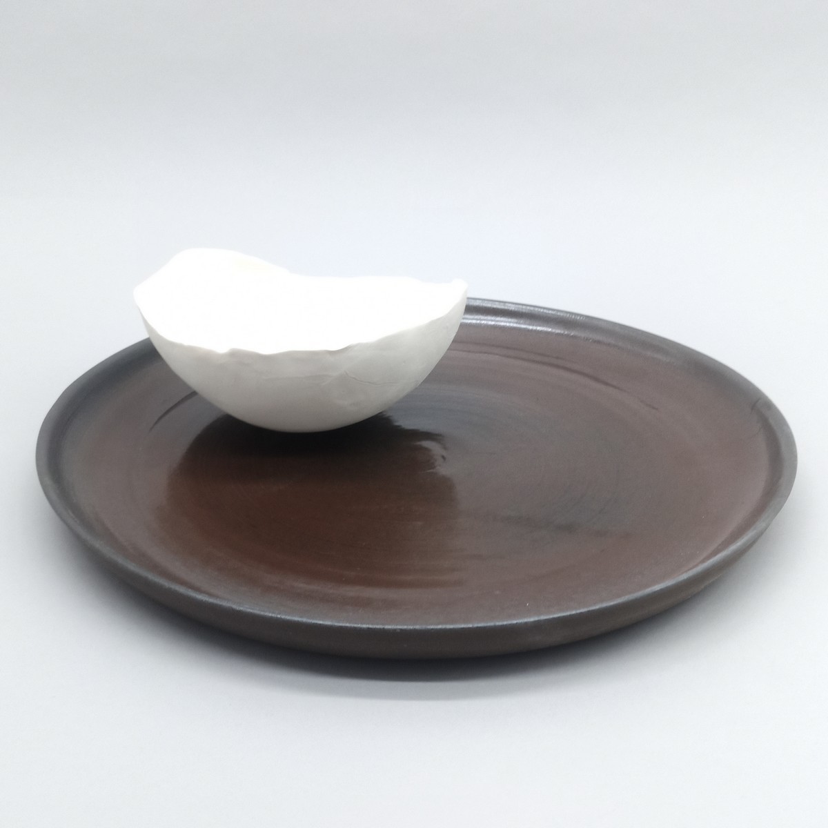 Jeux de cuissons et d'émail pour transformer le grès en chocolat. Nuance de marron et de noir pour assiette gourmande.