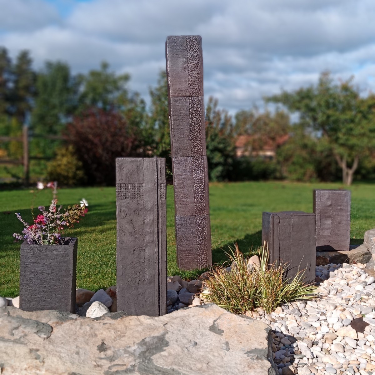 Sculpture "monolithe" adaptées sur-mesure pour rocaille paysagée.