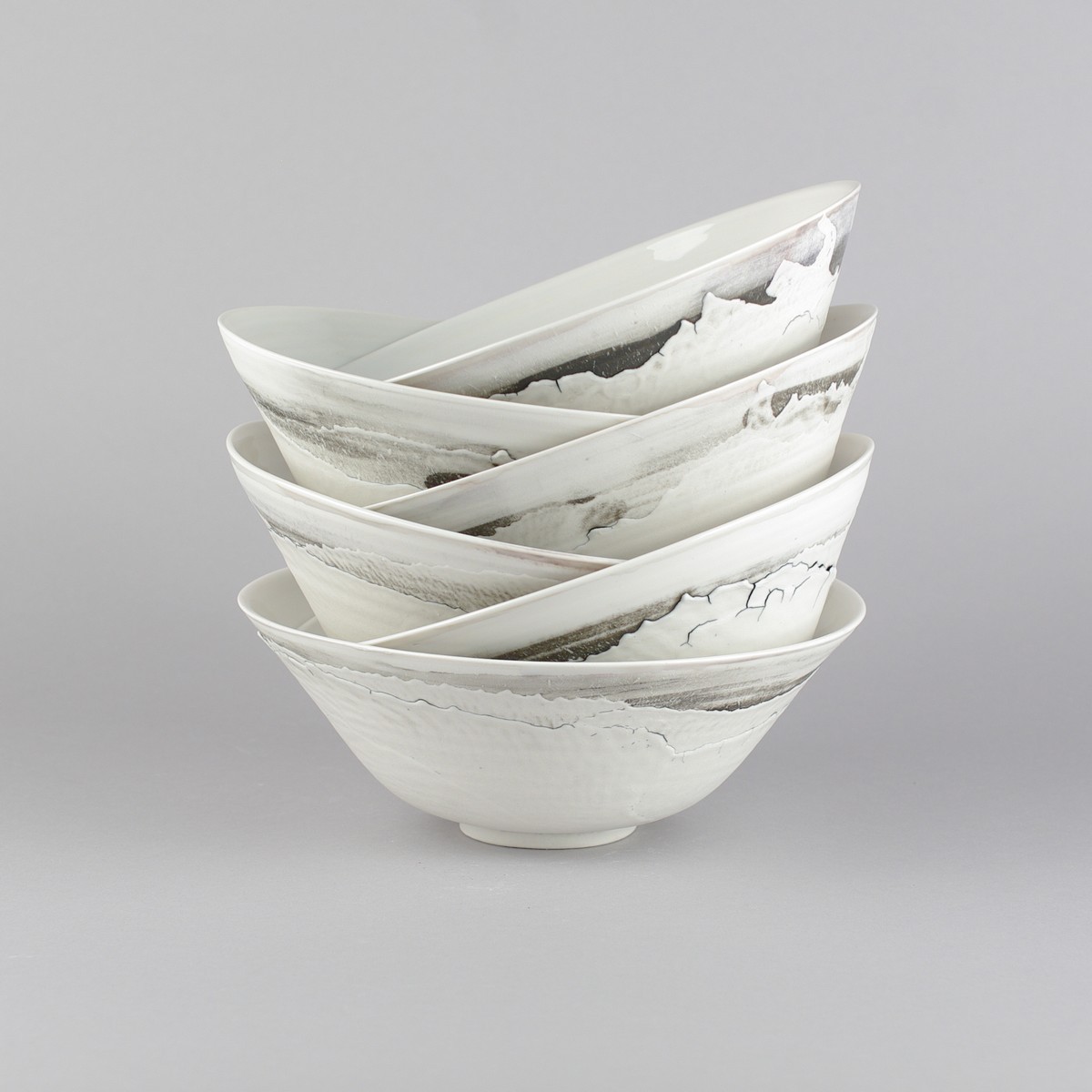 Bol en porcelaine ouvert avec pied plat. Forme de bol à soupe ramen. Collection "Aléasucs"