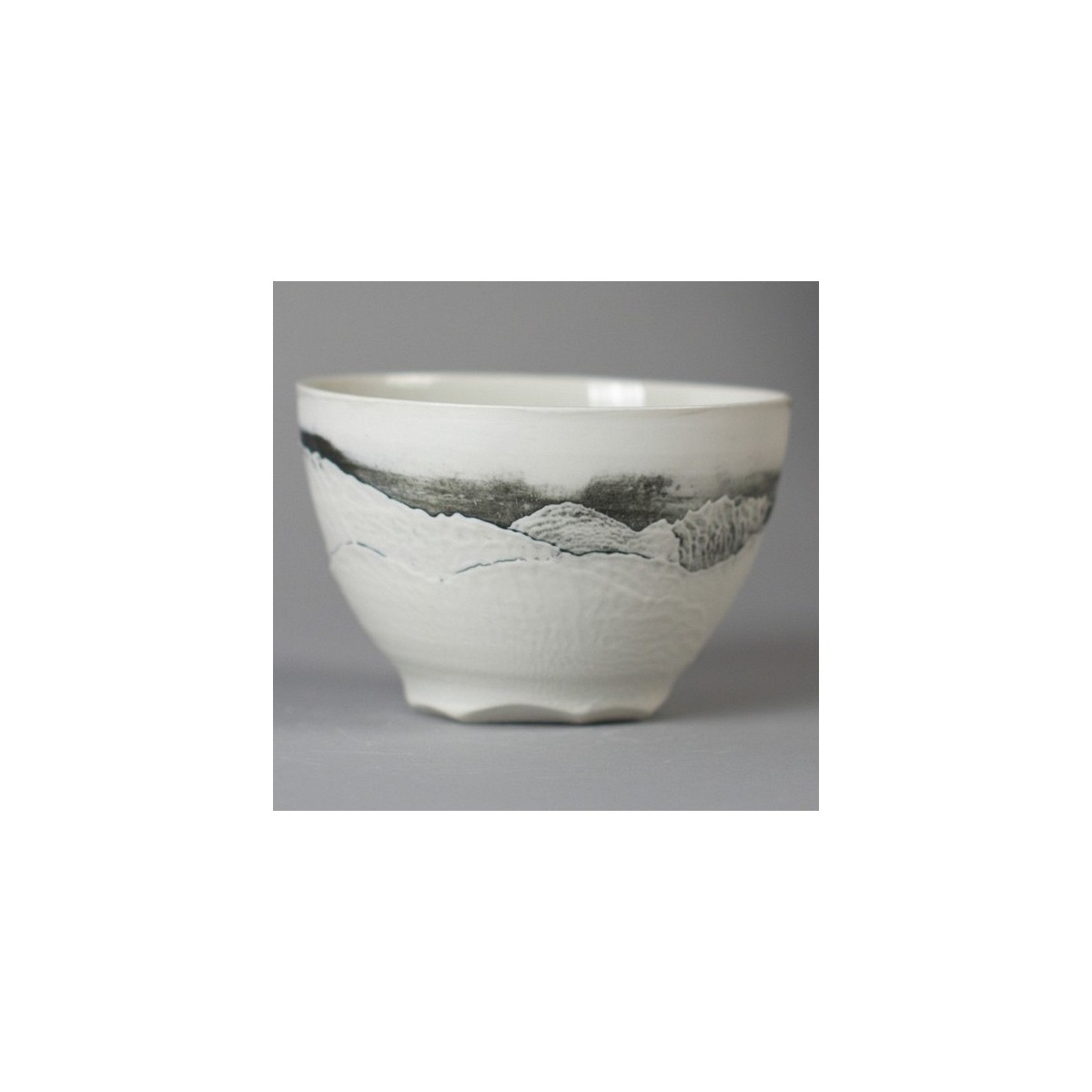 Bol en porcelaine de la collection "Aléasucs" noir et blanc, extérieur décor en relief fait de strates de porcelaine intérieur émaillé.