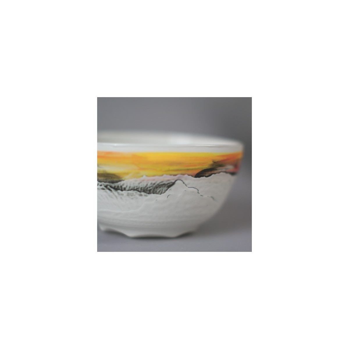 Bol en porcelaine de la collection "ô ciel", extérieur décor en relief fait de strates de porcelaine, intérieur émaillé. Ht 8 cm/ diam 15cm.