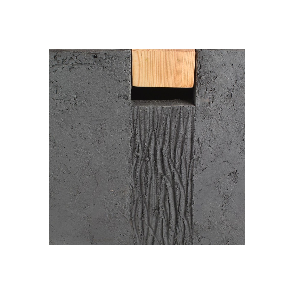 De tailles variées, ces tables coffres se composent d’un pied en terre de grès chamotté noir, impressions de matières ou gravures de surface. Ces tables d’appoint associent la douceur du bois et la terre rugueuse pour un résultat de contraste. Chaque pièce est travaillée en fonction du mariage bois terre, le veinage du bois et le travail d’impression de la base en grès doivent être en harmonie.Comme chevet ou assemblées par 4 au salon, le bois est adaptable en fonction de votre intérieur, de l’impression de matière choisit sur le grès ou de son utilisation en extérieur. Le bois français est coupé et travaillé par un ébéniste d’art sans solvant ni vernis toxique.