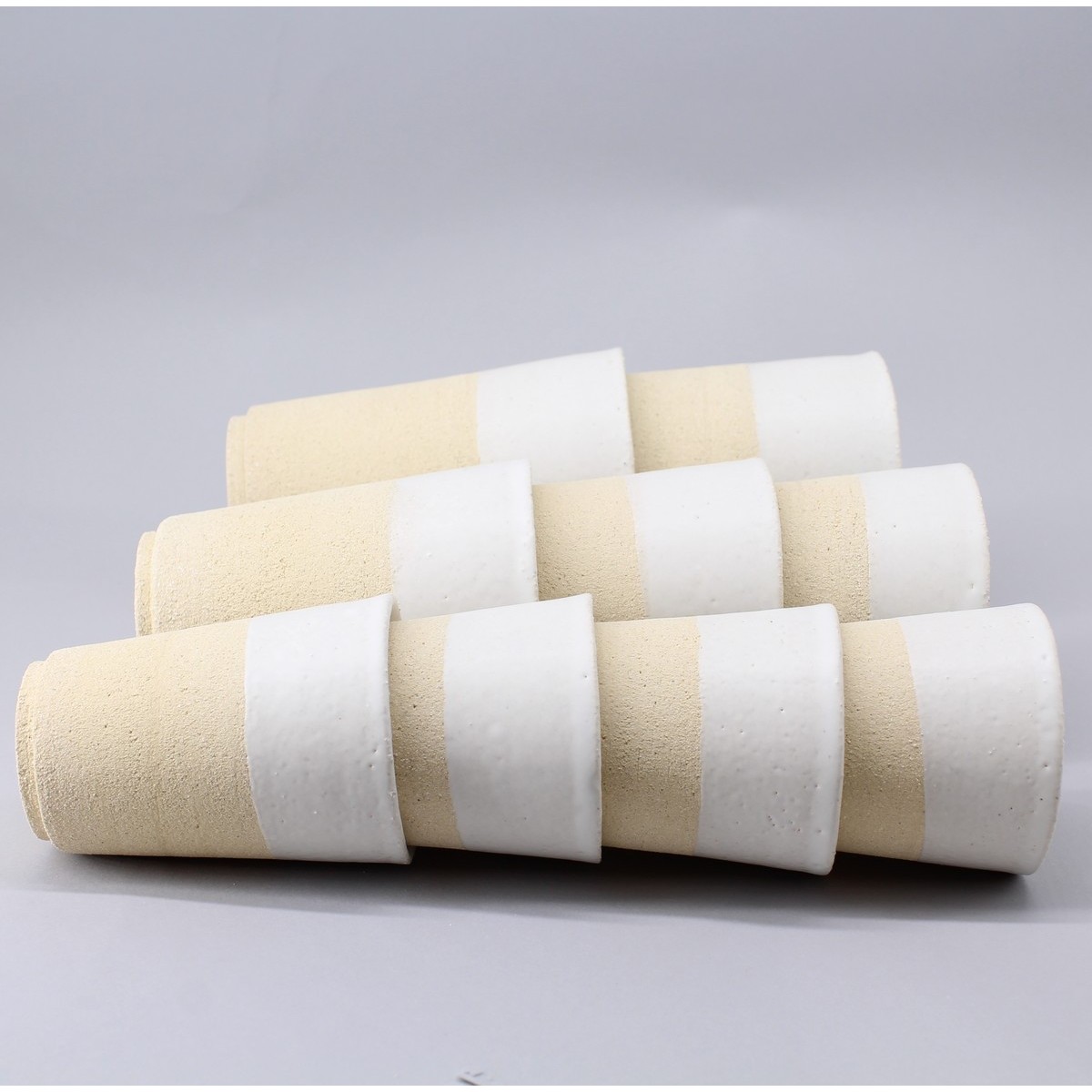Gobelet tasse à café en grès blanc légèrement rugueux en extérieur. L'émail blanc mat très doux contraste en intérieur pour un effet naturel très agréable.