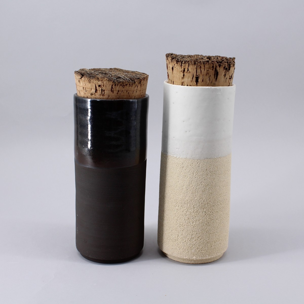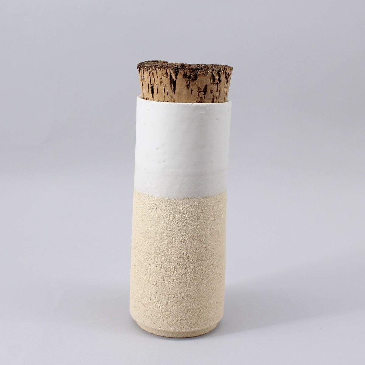 Bouchon liège naturel. Extérieur brut en contraste avec l'émail blanc mat très doux.