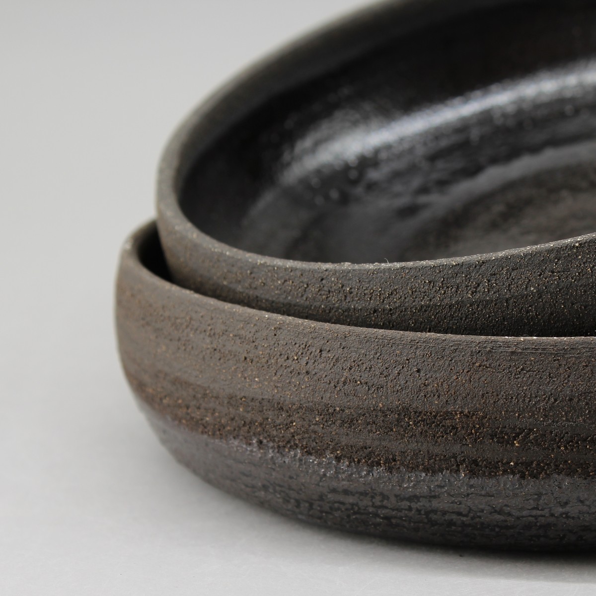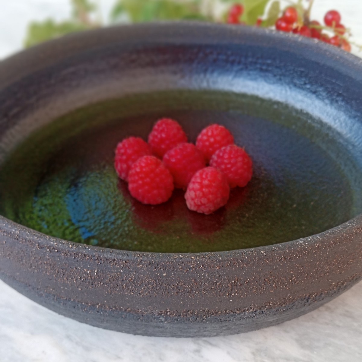 Les assiettes "pile ou face " sont émaillées en intérieur et en extérieur, la lèvre est laissée brute pour jouer avec le contraste de matières. Elles permettent de dresser les plats sur les deux faces de l'assiette . Double fonction pour deux fois plus de créations.