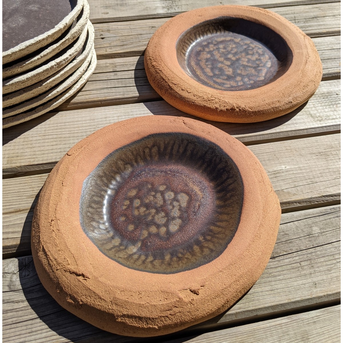Projet d'assiettes sur-mesure pour le Chef Sylvain ROUX. Grès roux et émail sur-mesure.
