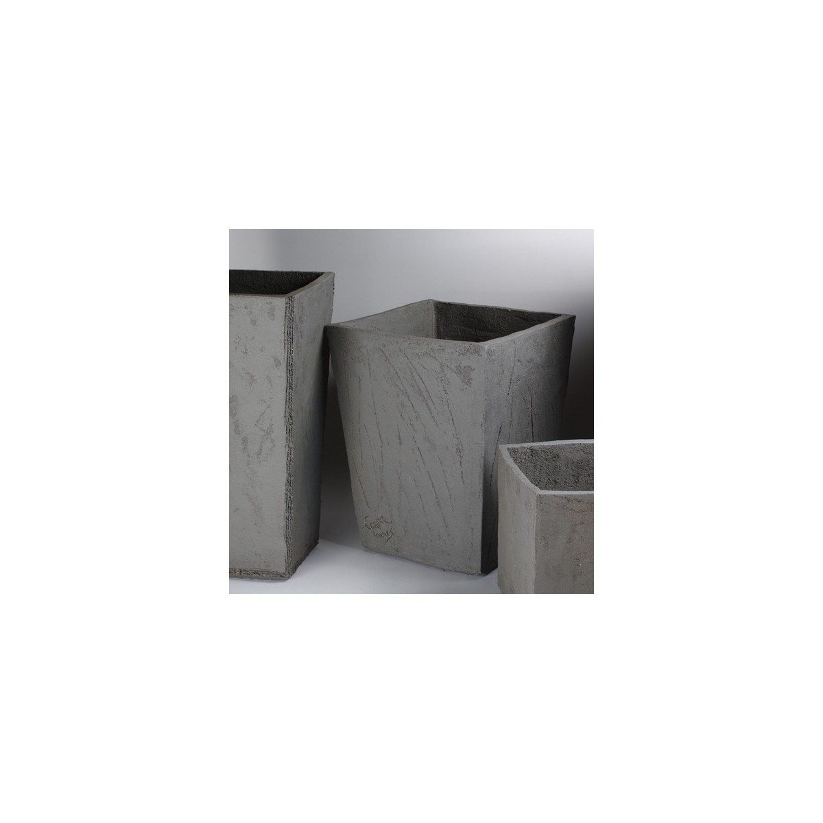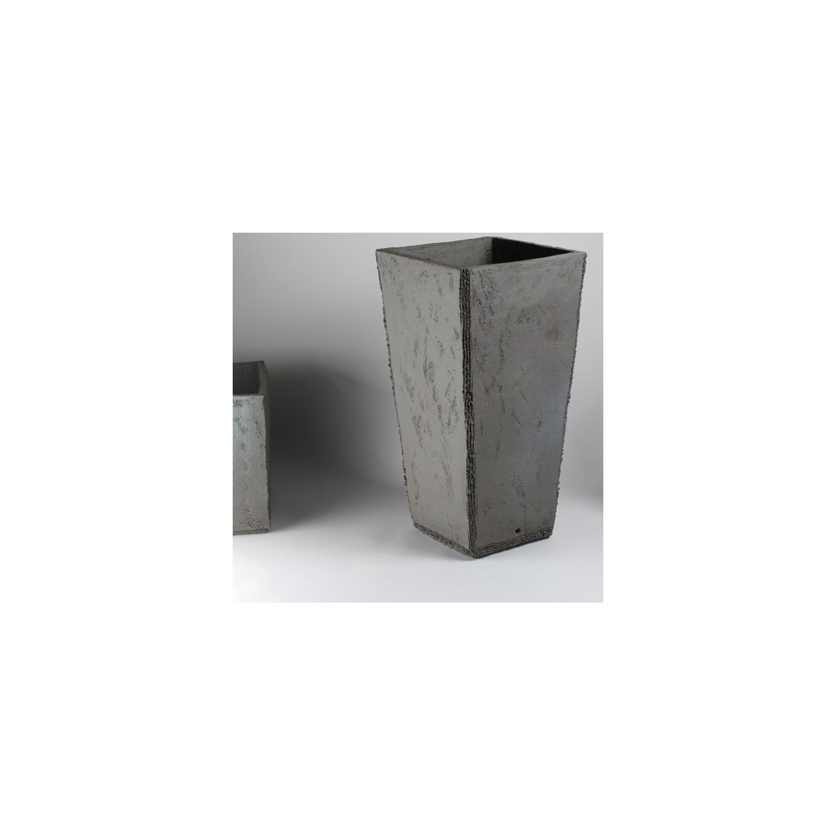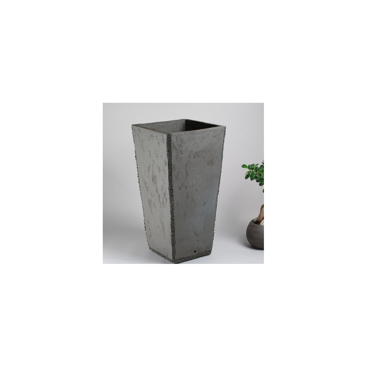 Pot de jardinerie pyramidal en grès noir, grès taloché et métallisé à la cuisson. HT 60, LONG 30cm.