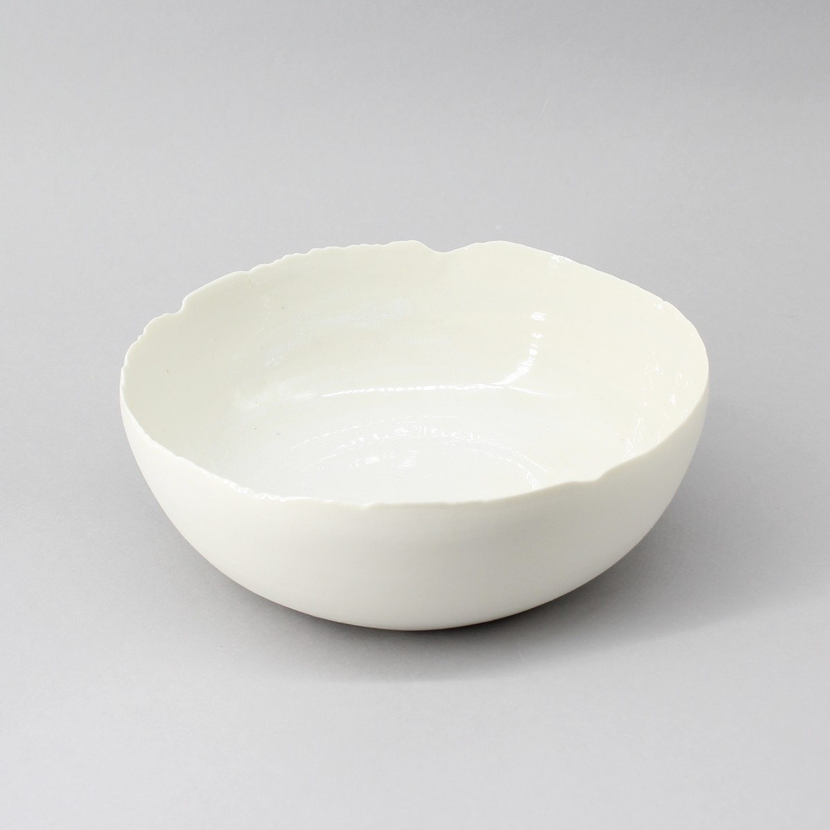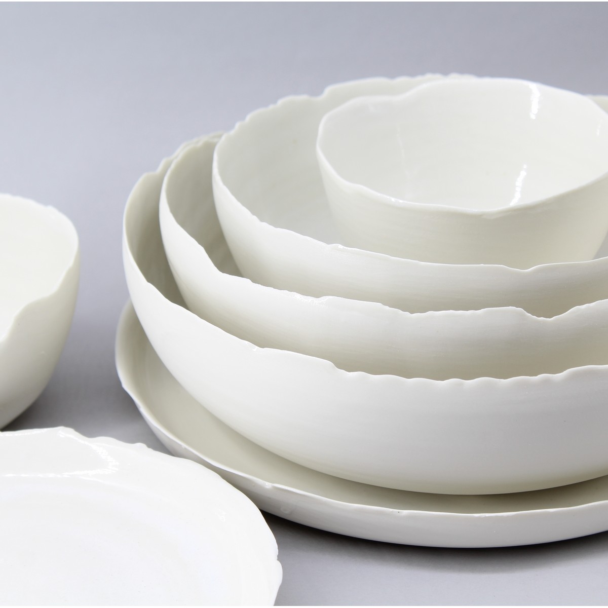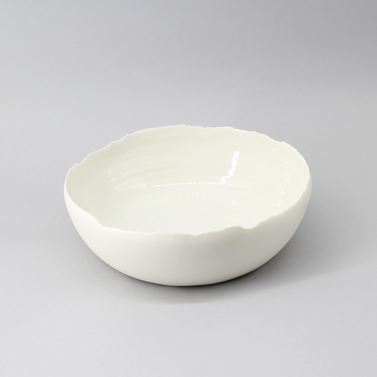 Assiette creuse tournée en porcelaine de Limoges pure. Extéieur brut lisse, intérieur émaillé transparent naturel.