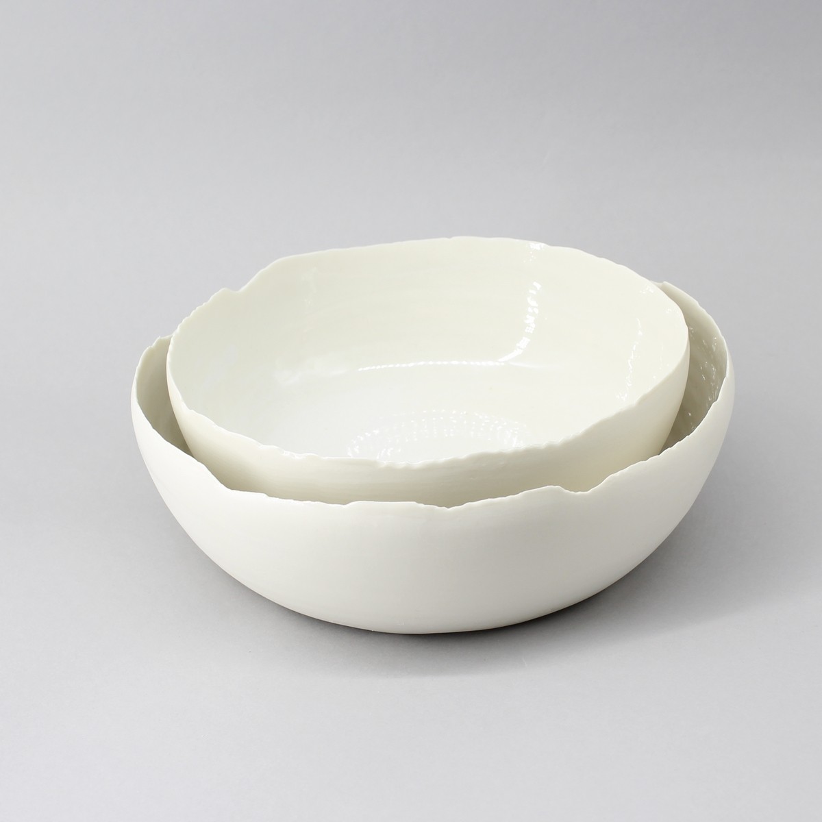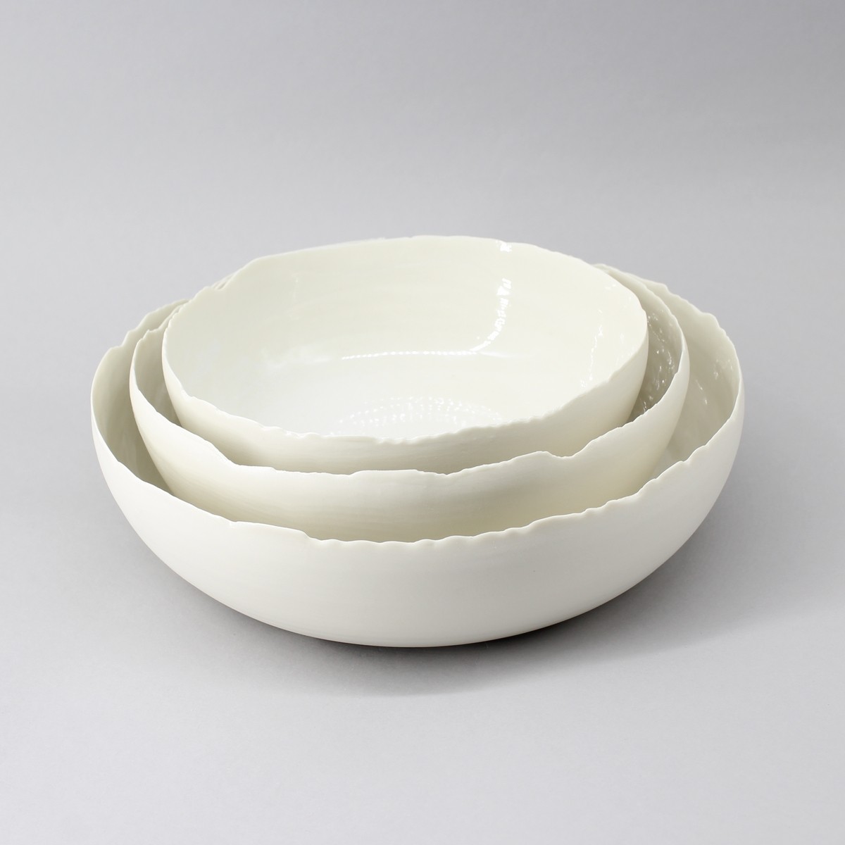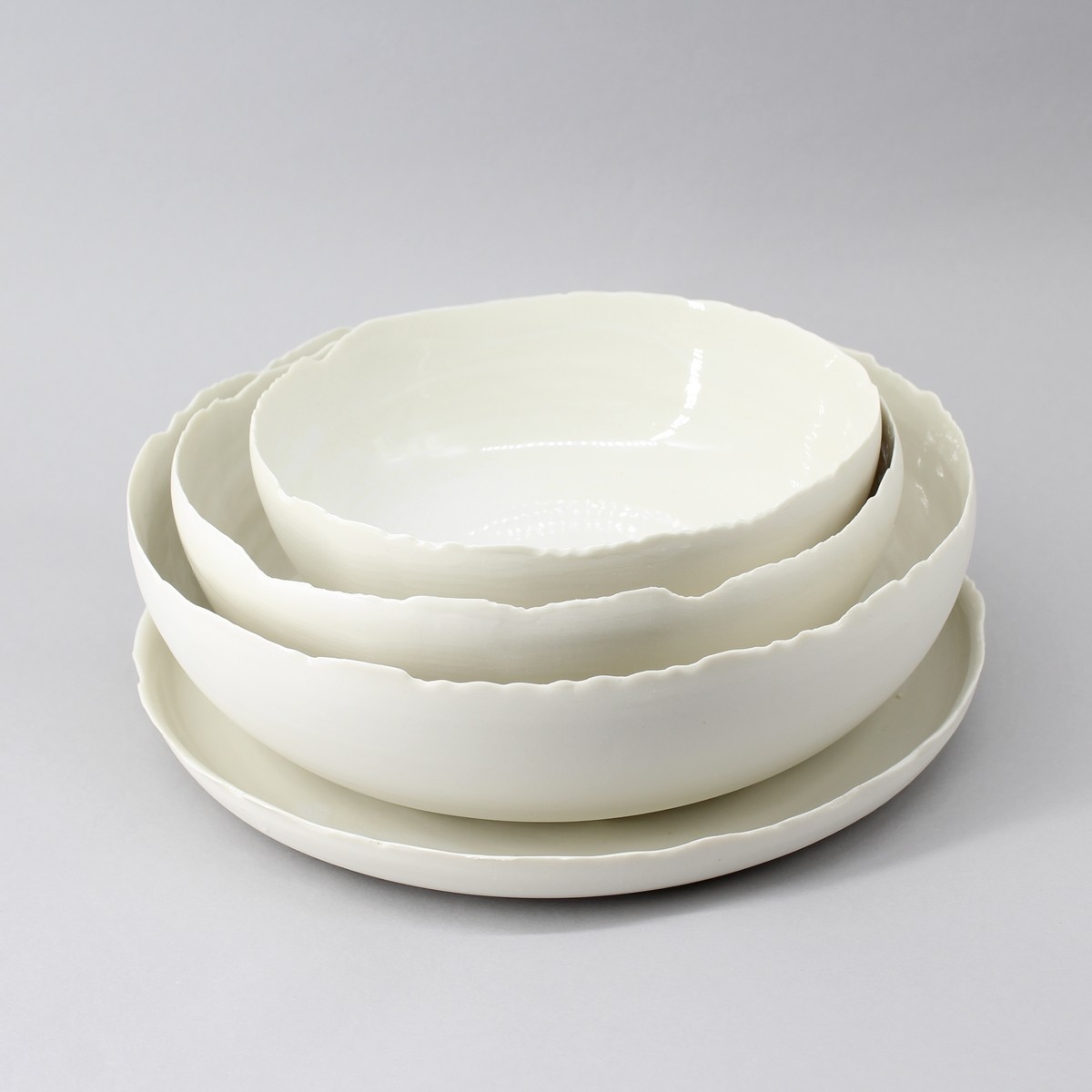 Assiette creuse tournée en porcelaine de Limoges pure. Extéieur brut lisse, intérieur émaillé transparent naturel.