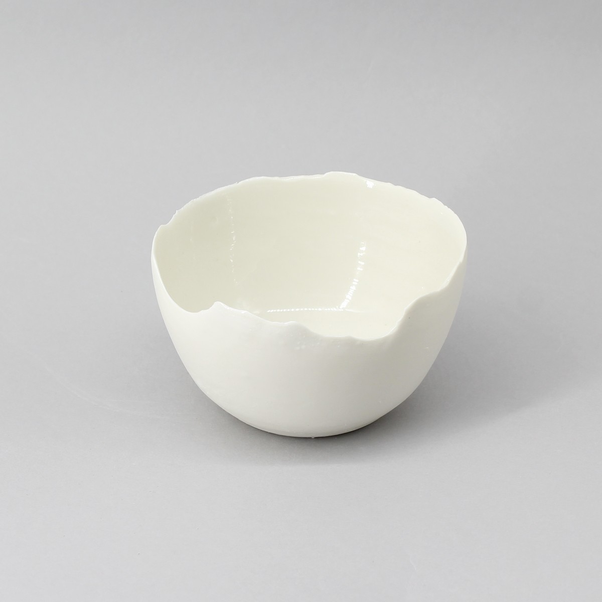 Bol tournée en porcelaine de Limoges pure. Extérieur brut lisse, intérieur émaillé transparent naturel.