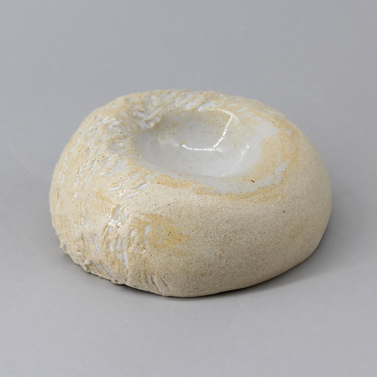 Satellite en forme de nid creux d’environ 5 cm de diamètre. Fond rond de la zone de dressage. Bords imprimés. Les bords peuvent être bruts, émaillés ou émail essuyé.