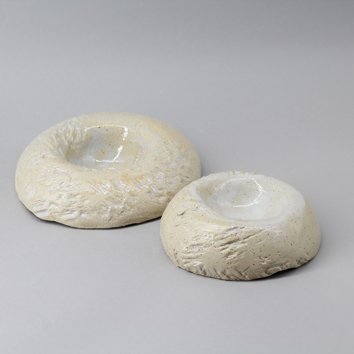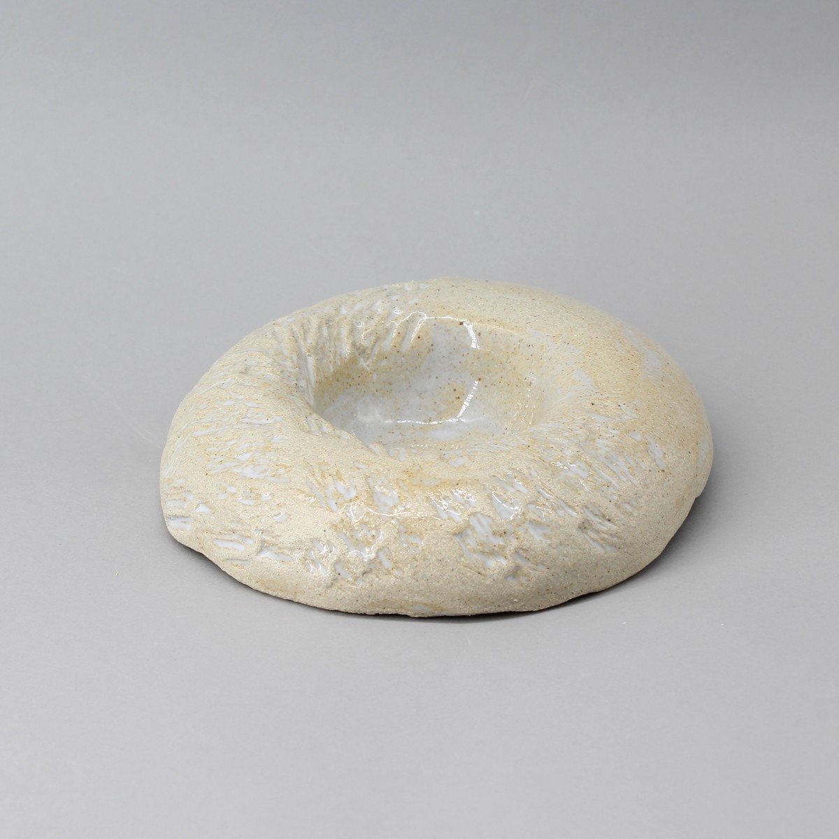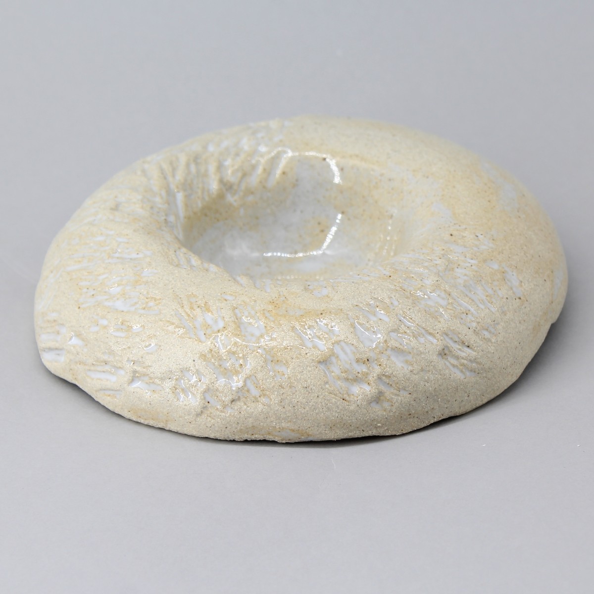 Satellite en forme de nid avec un fond plat d’environ 5 cm de diamètre. Fond aplanit de la zone de dressage. Bords imprimés. Les bords peuvent être bruts, émaillés ou émail essuyé.