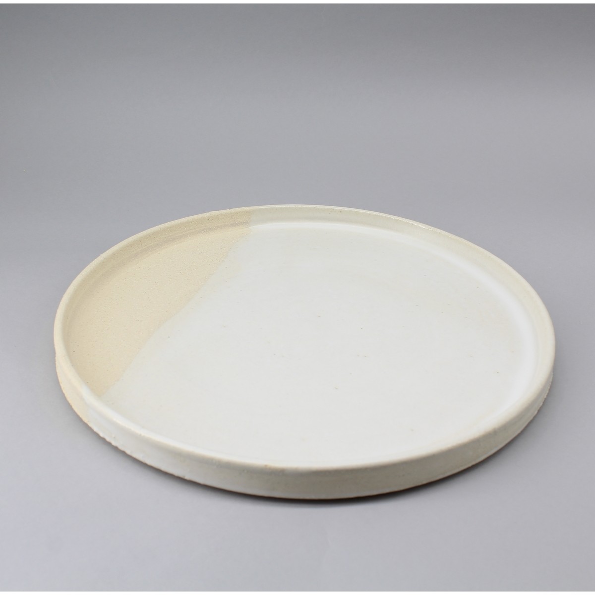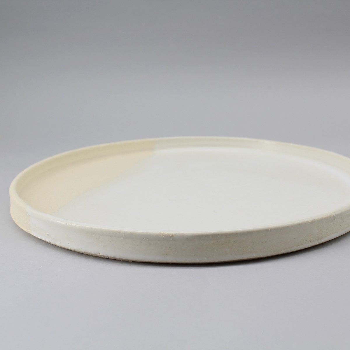 Assiette tournée en grès bord droit ; émail sur 2/3 intérieur.
