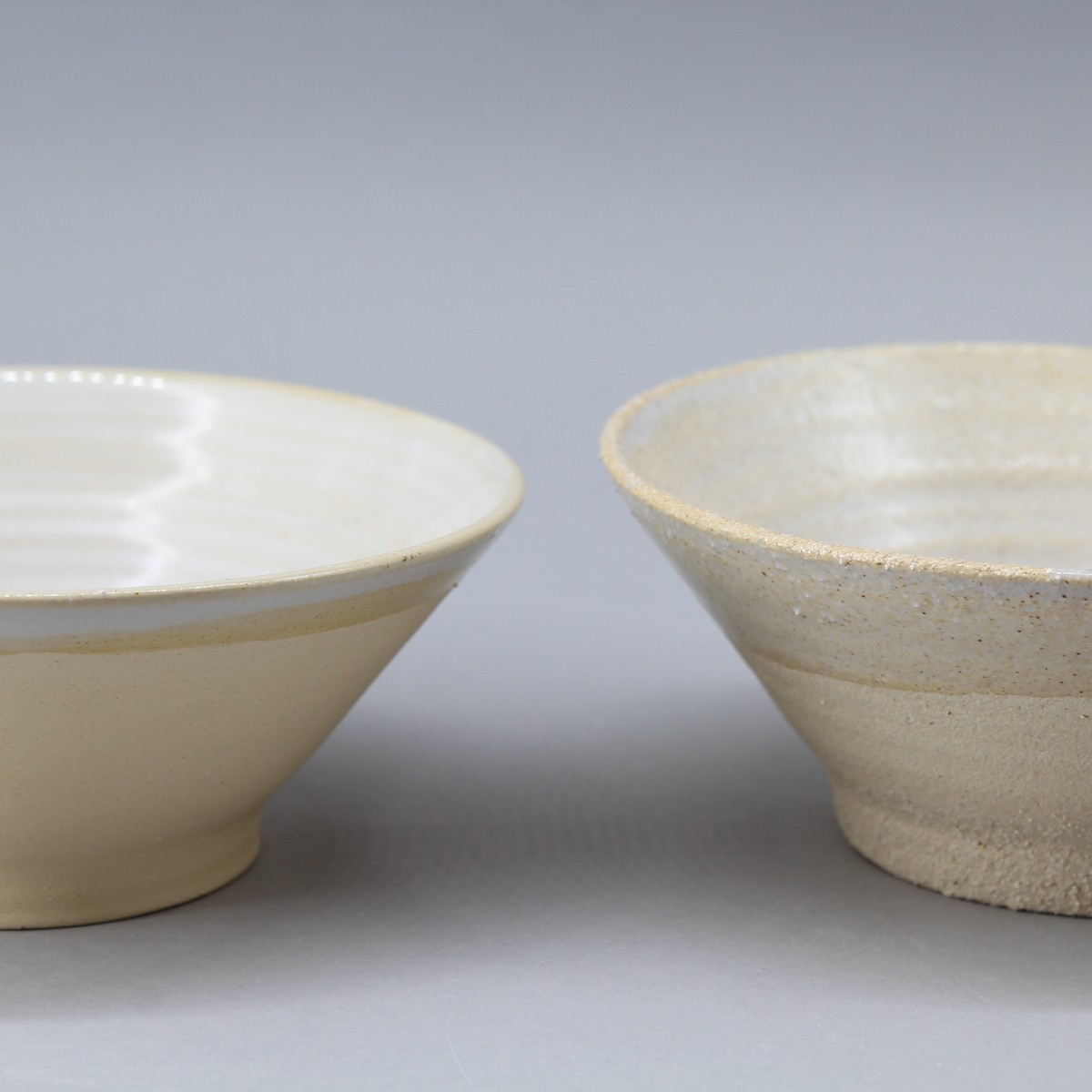 Bol conique avec petit pied droit . Terres et émaux au choix.