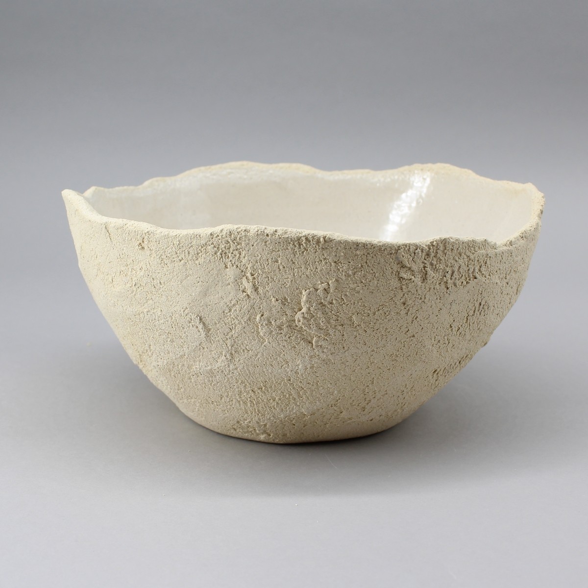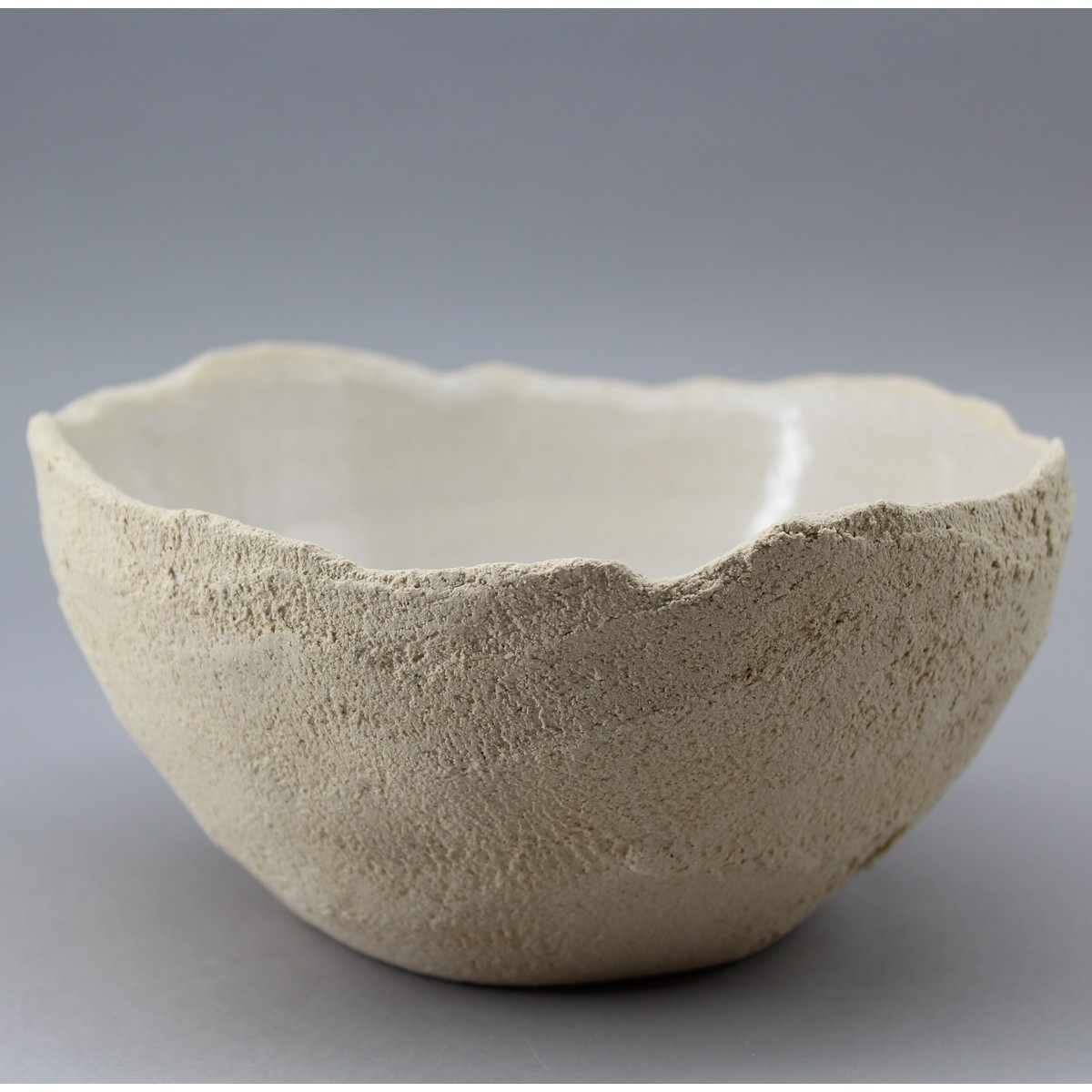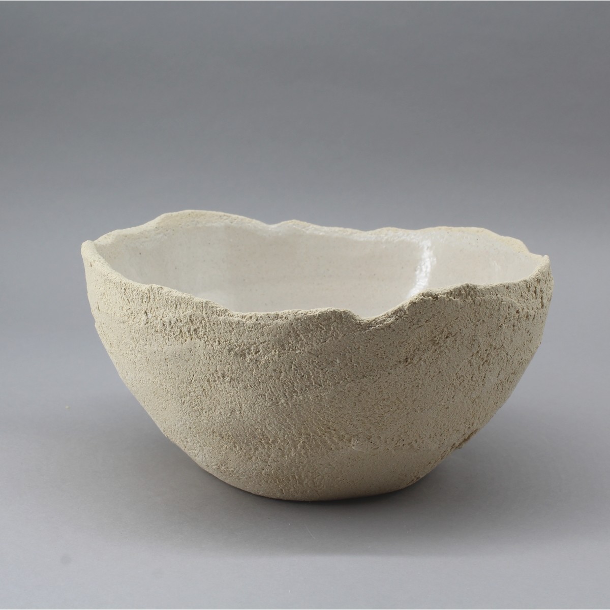 Bol extérieur brut rugueux , bord déchiré , fait dans le creux de la main.