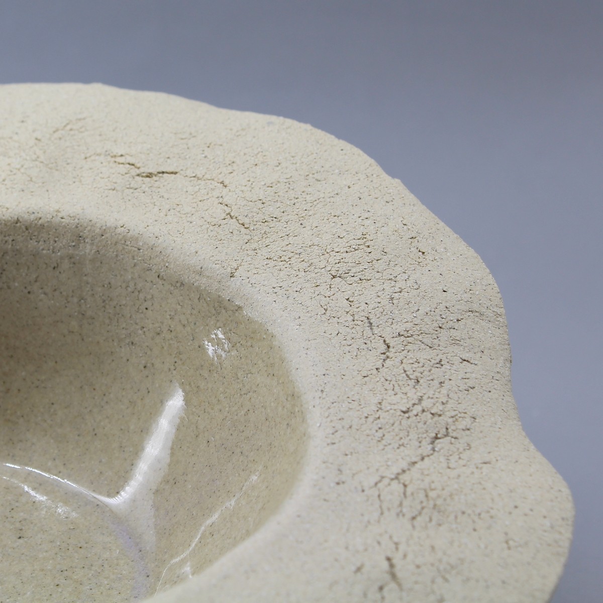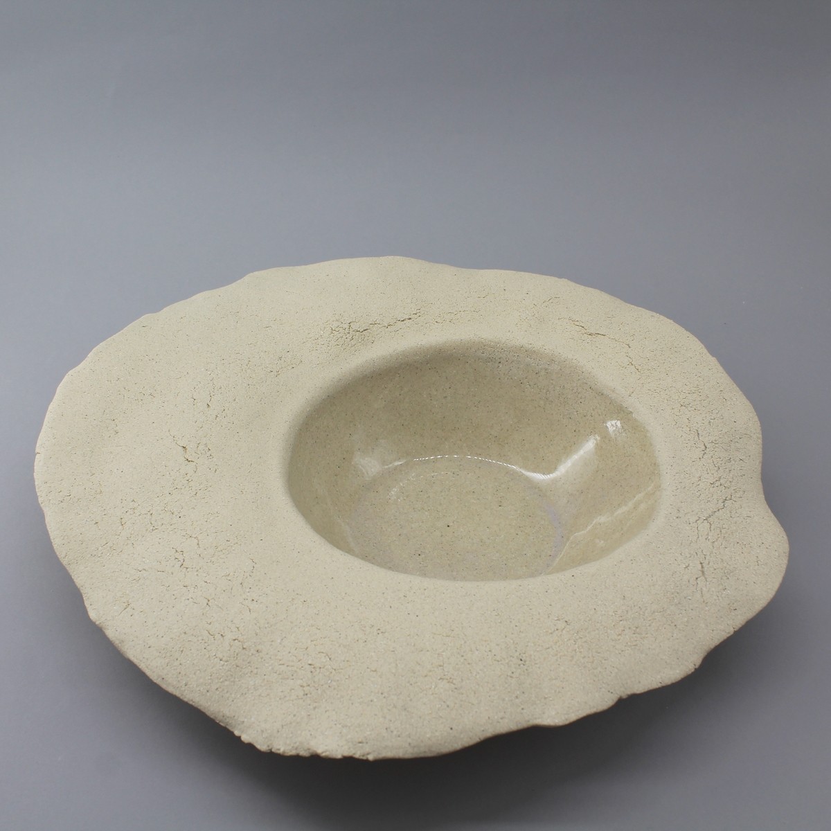 Assiette creuse grande ailette brute création de fissures de séchage de terre mis en avant sur le pourtour.
