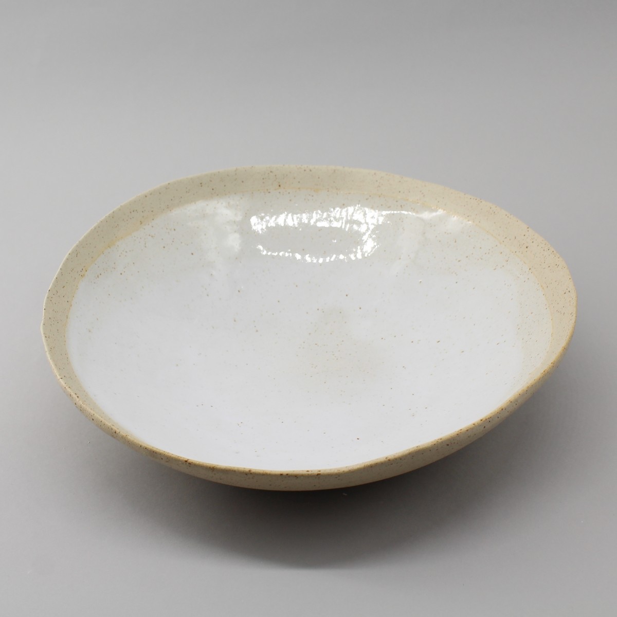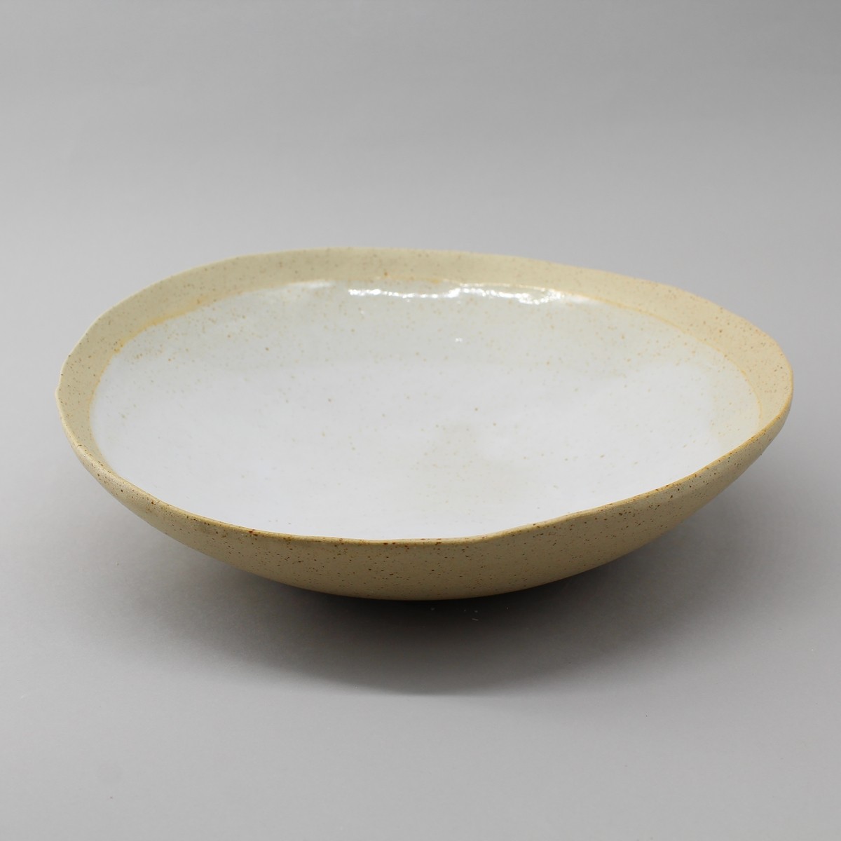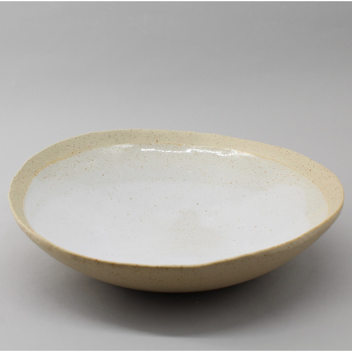 Assiette creuse en forme de coupe fond rond . Terre grès vanillé .