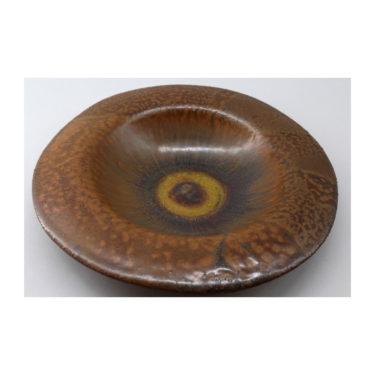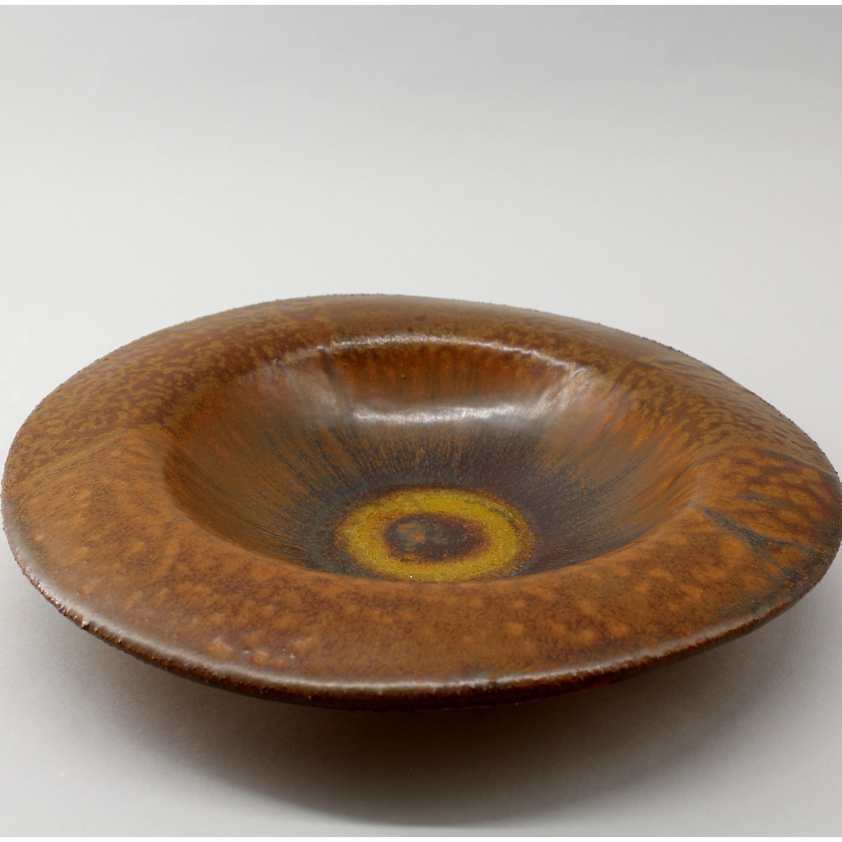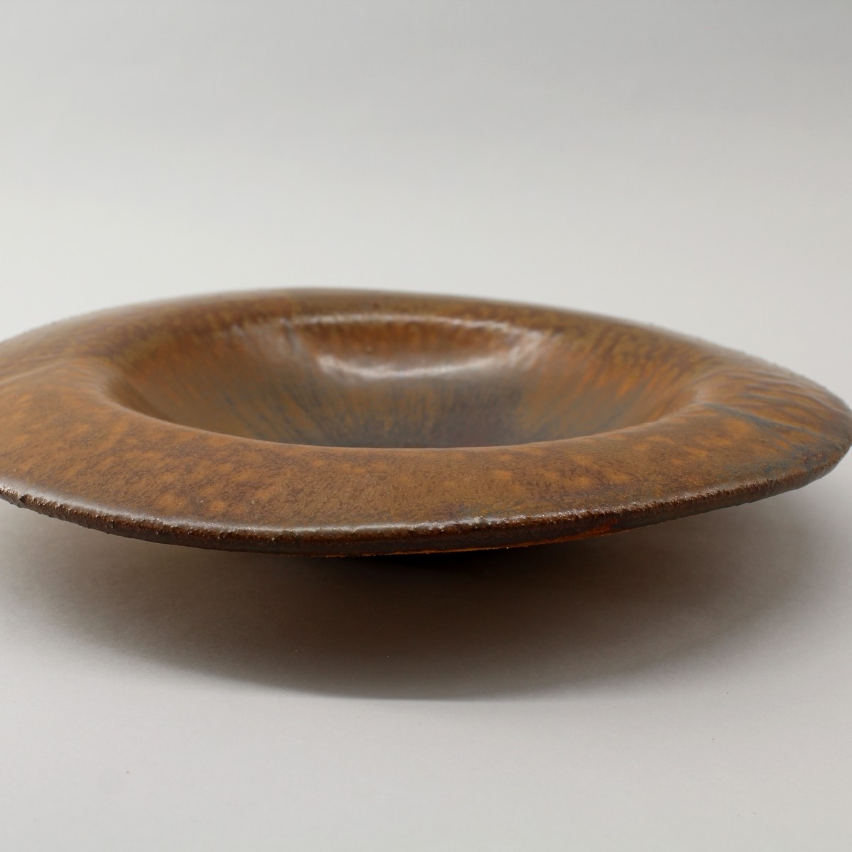 Forme de bol avec grande ailette. Grès émaillé roux avec des nuances or.