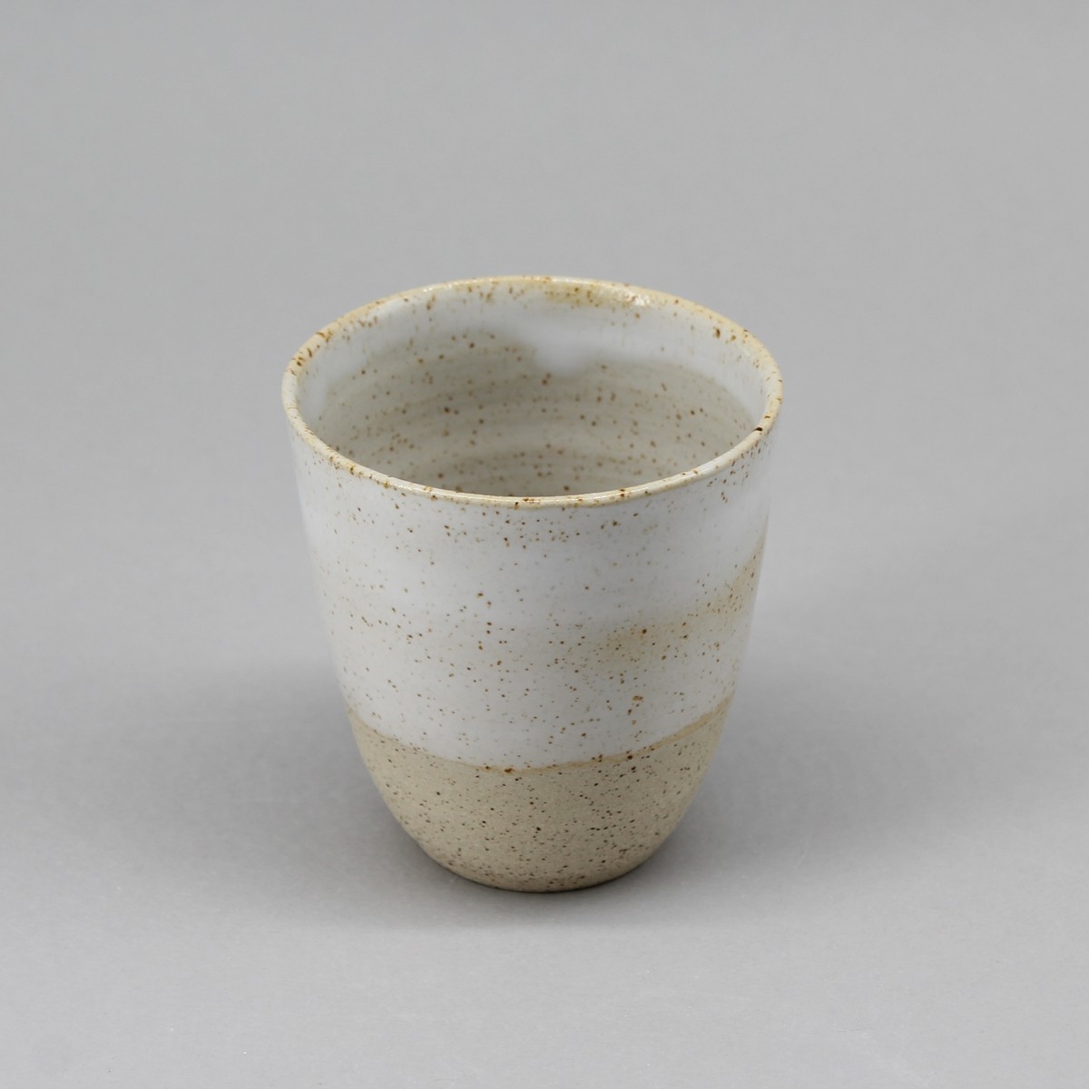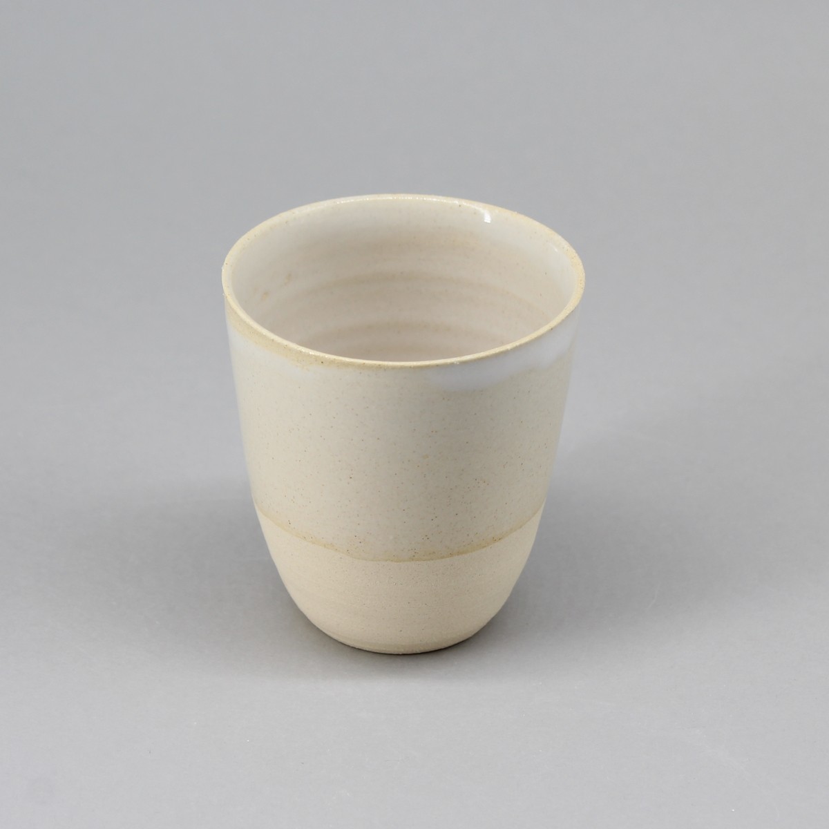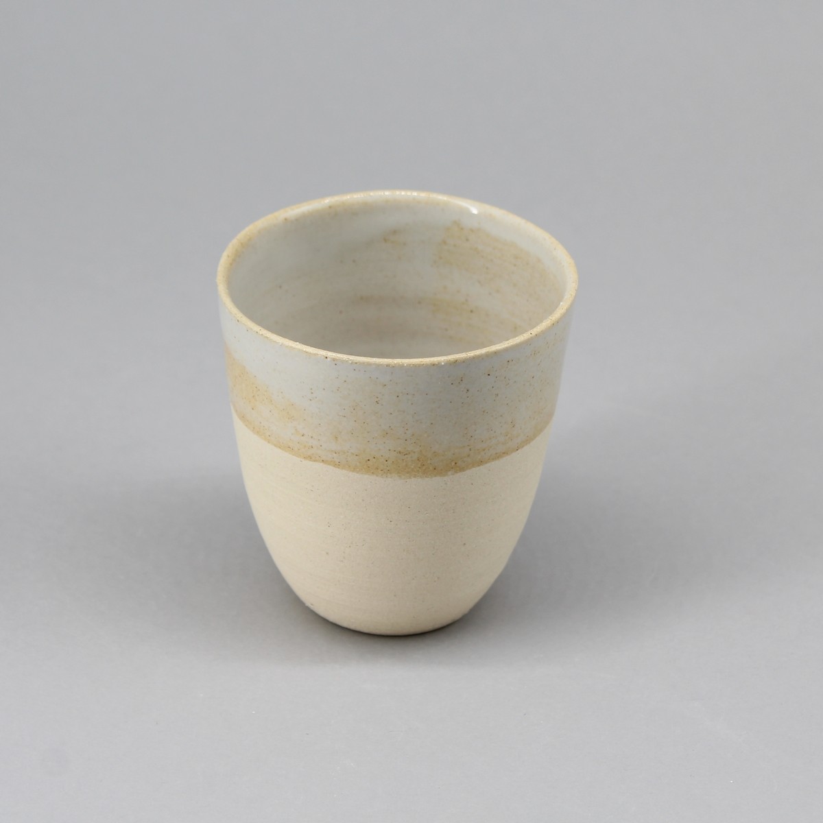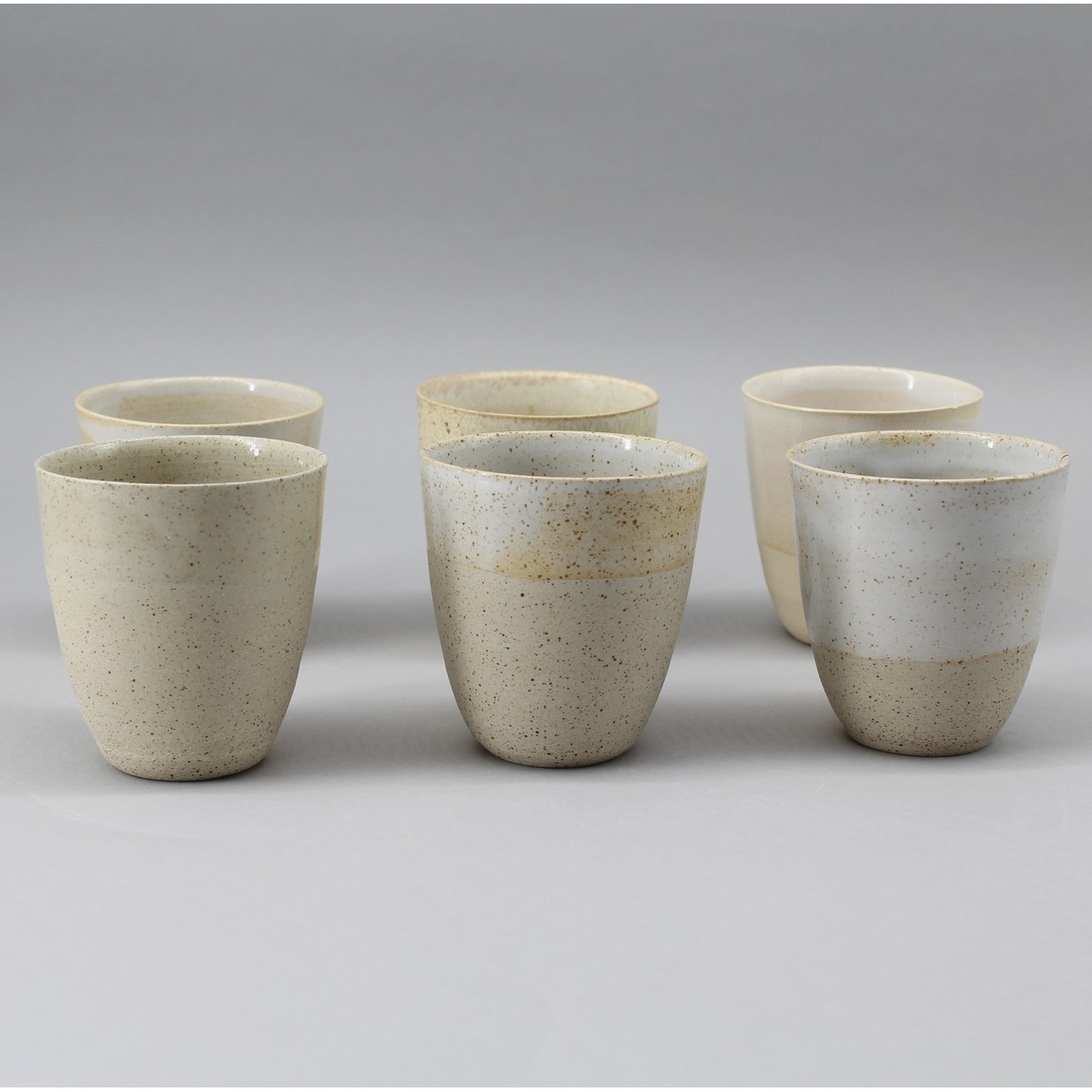 Exemple de tasses gobelets en grès ( blanc ou vanillé) existe sur mesure de tailles formes et terres . Email au choix.