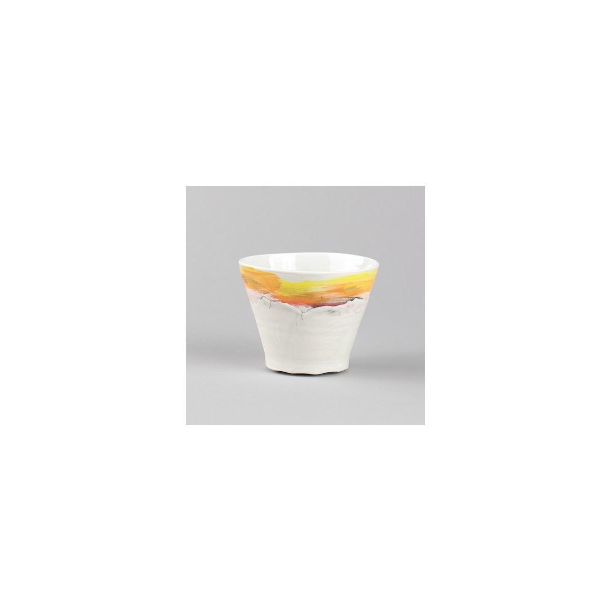 Petit thé ou café long, gobelet ou je ne sais, attention la tasse " ô ciel " va devenir votre indispensable! Une finesse en bouche et une douceur en main tout à fait exquise. Existe en forme boule ou conique. L'émail intérieur blanc brillant contraste avec un extérieur en relief brut.