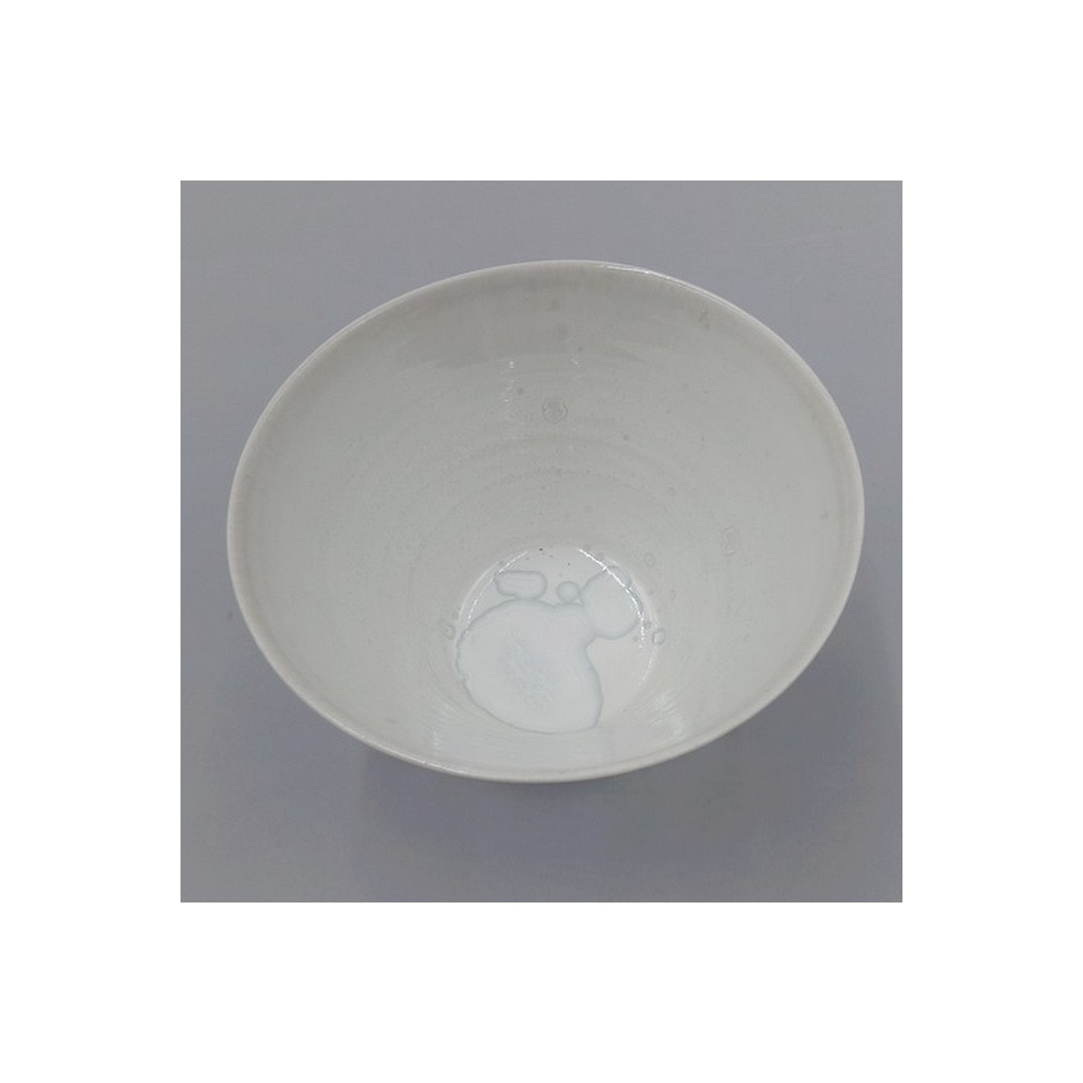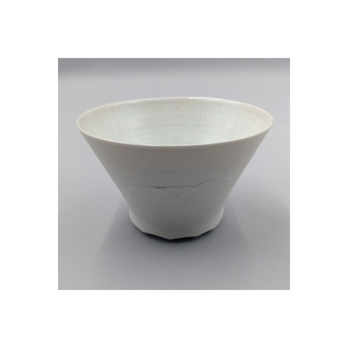 Bol conique, coupe de porcelaine, extérieur brut en relief, intérieur émaillé effet cristaux de givre.