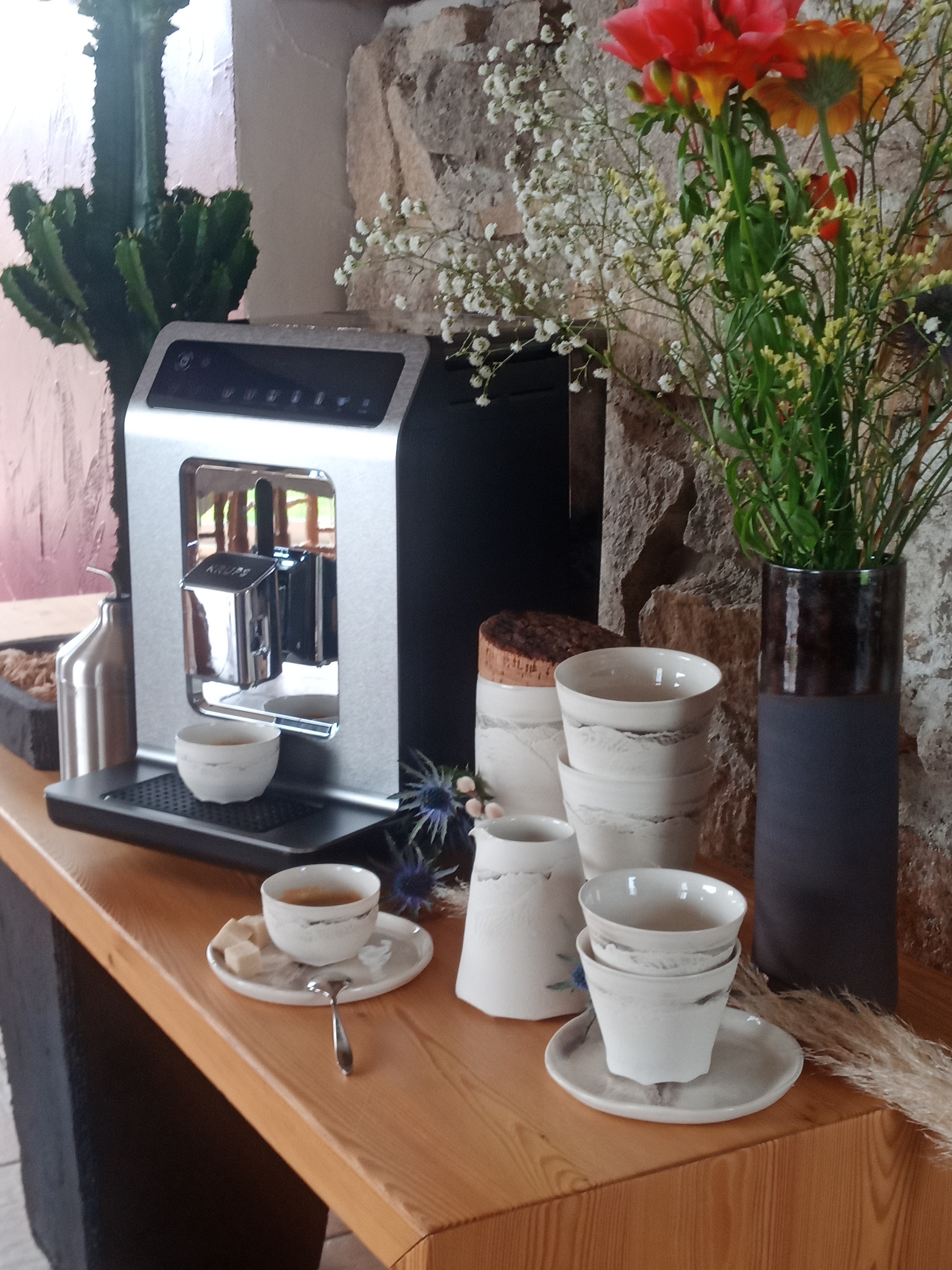 Un shooting photo chez Grains de sucs torréfacteur bio puis avec l'agence Muzes agency à l'atelier pour suivre l'évolution de chaque étape de la fabrication des tasses à café. L'histoire sera contée sur le site de Krups pour valoriser le savoir faire et la production made in France de l'atelier Entre terres.